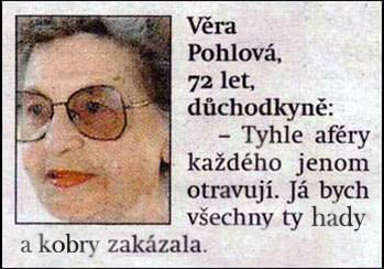 Sakra tak to už jsem asi slepá. Praha plná hadů... žiju tu už 4. rokem hady potkávám jen v zoo a na burze. Co jen dělám špatně? Ale je to zase profi článek Nadpisy typu "Časovaná bomba" jsou prostě nej...