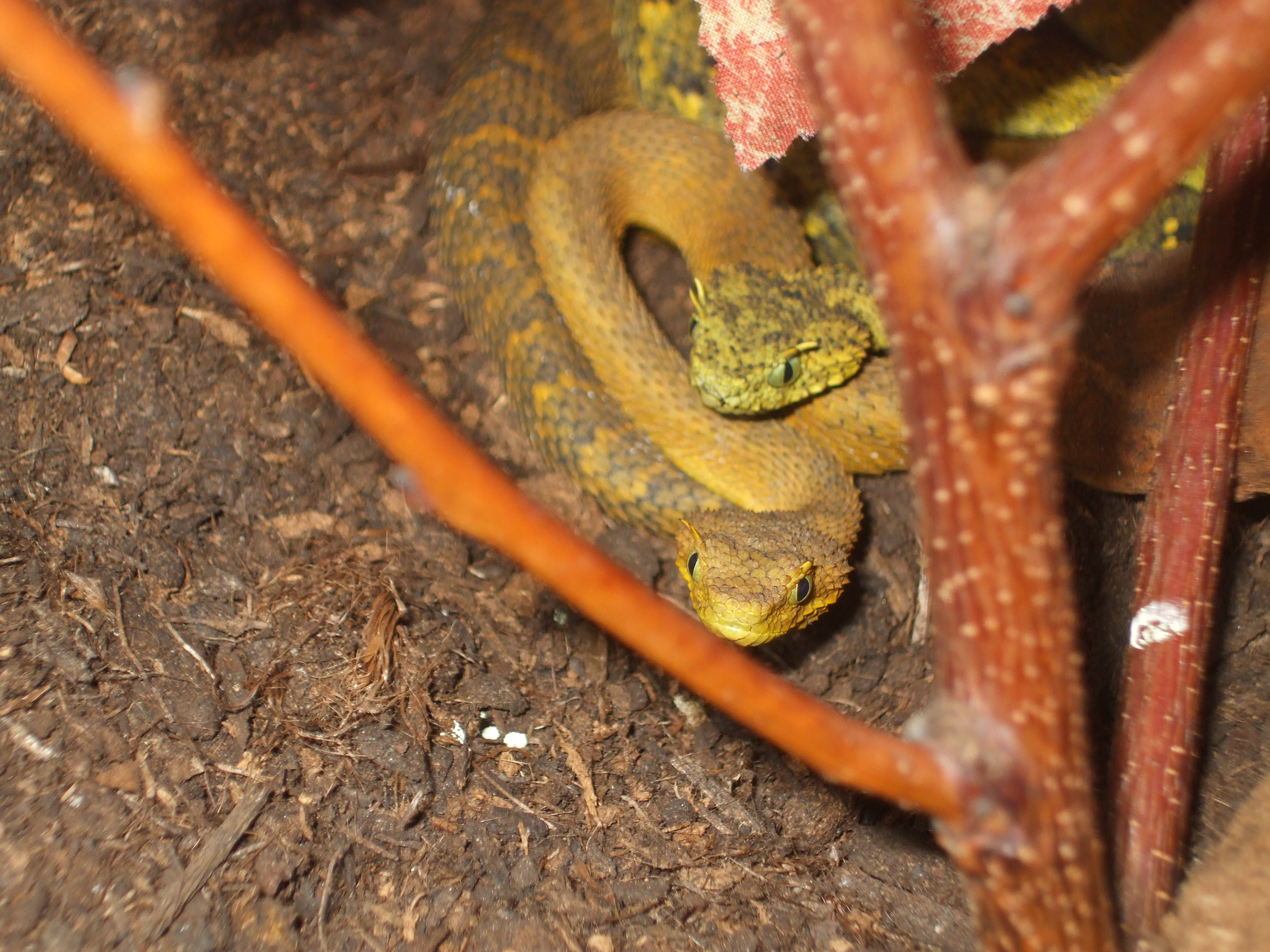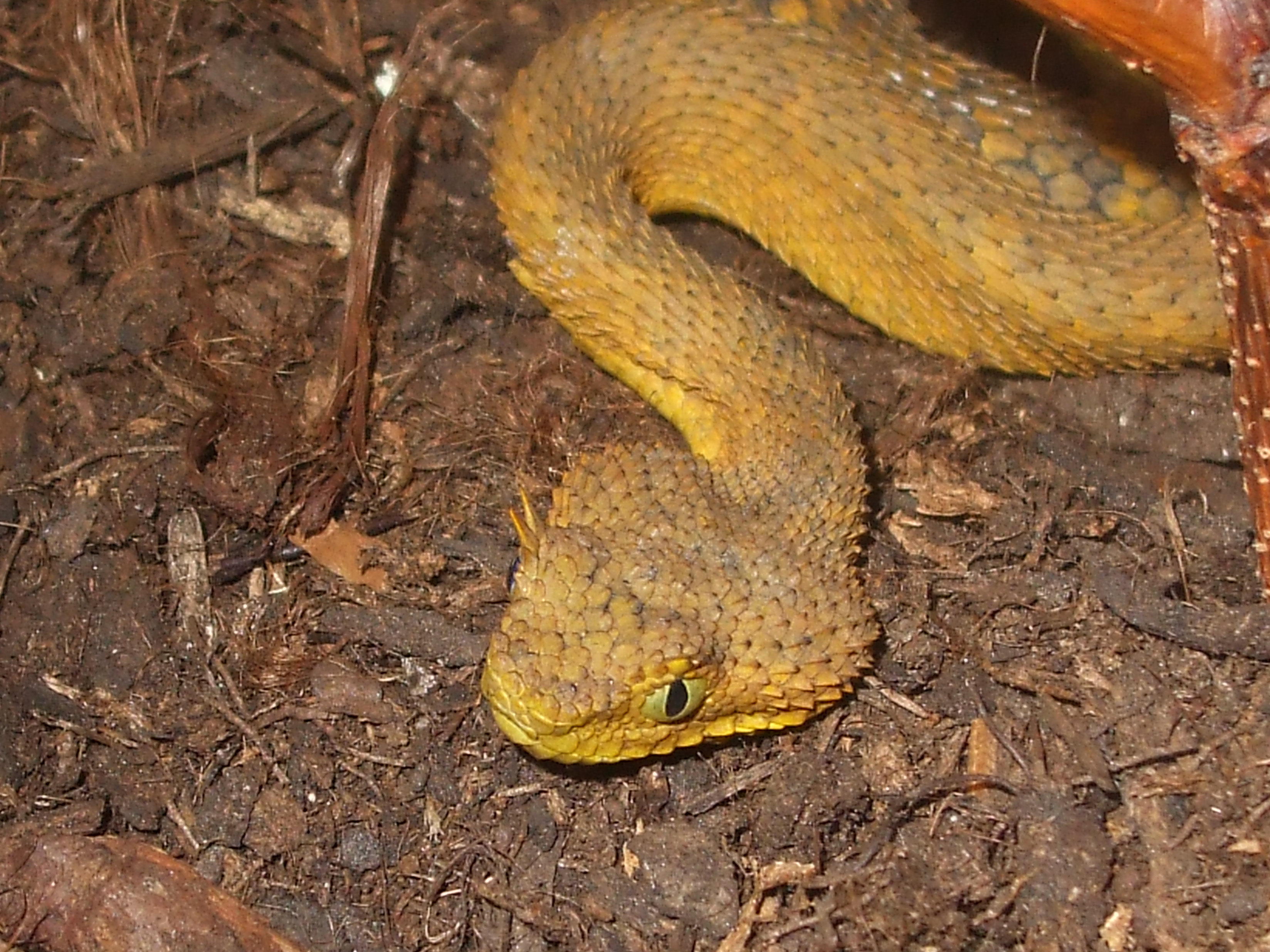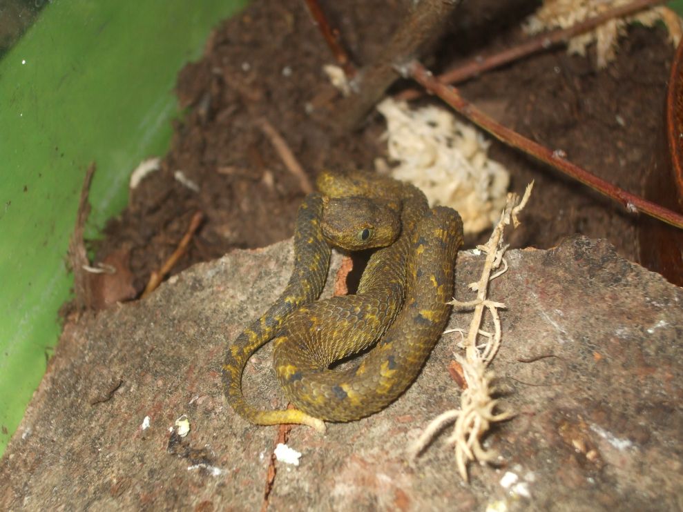no nitscheika je jediná z rodu Atheris v mojom chove -zatial .Ked bude zdravá tak ju v pvom rade chcem dopárovat.Potom by som určite siahol po nejakých kvalitných kusoch z odchovu A.squamigera-na farbe by mi až tak nezáležalo. No, moc zmijí nechovám/okrem nitscheiky a nasicornisky/,nick Pitviper skor znamená moju oblubu v ázijských štrkáčovcoch a štrkáčoch r.Crotalus.Pitviper je v preklade zmija s jamkou-jamka kde sú ukryté termoreceptory.