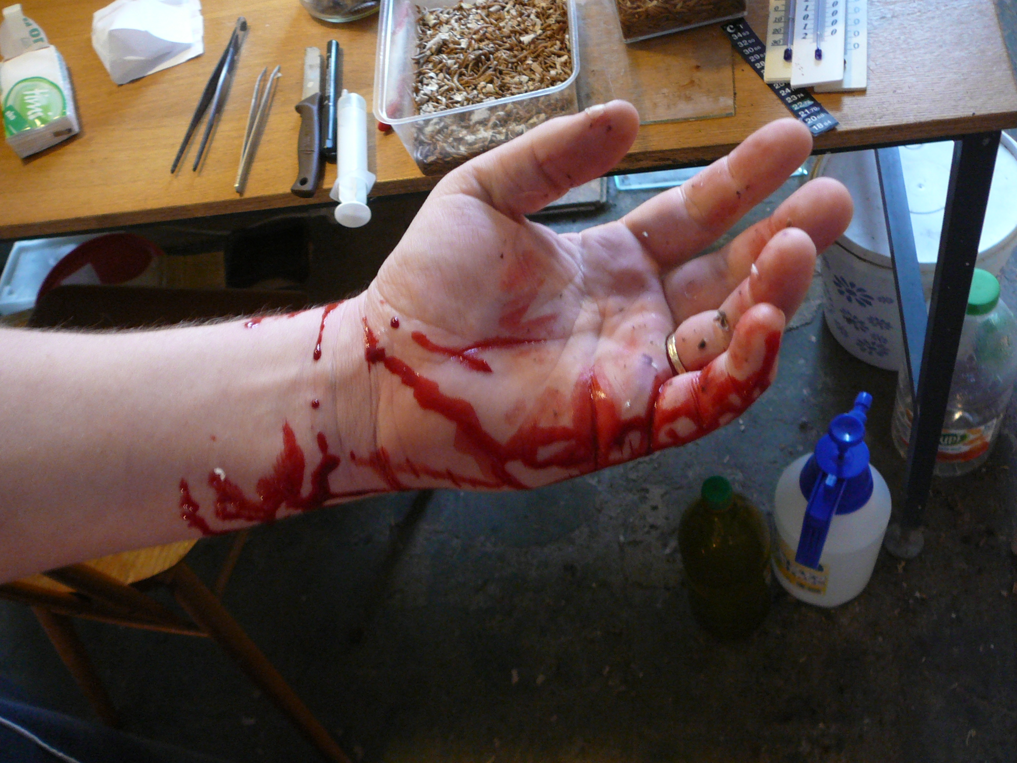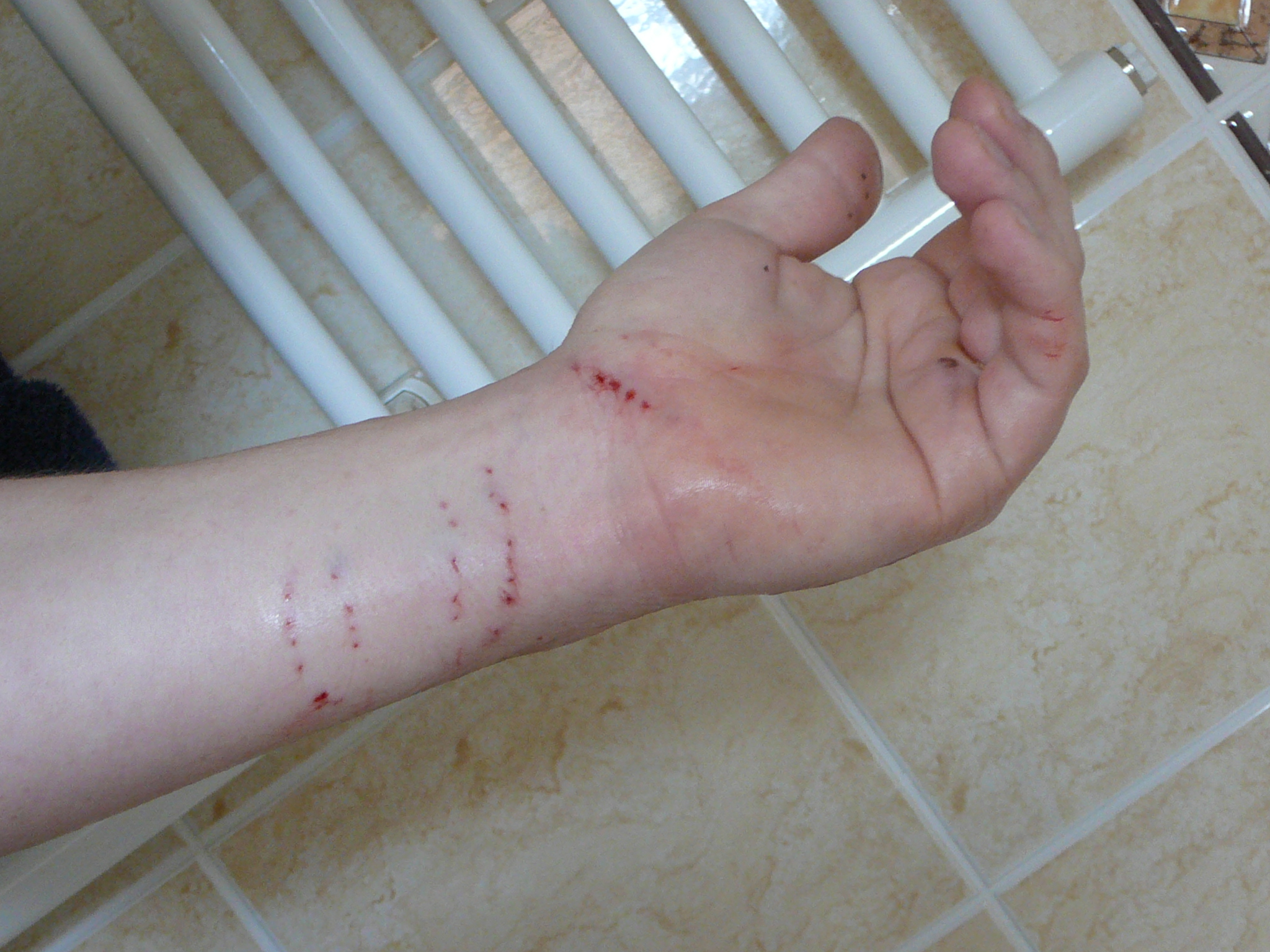 )...většinou jsou to jen oděrky, u mláďat to ani nepovažuju za kousnutí, ale dlouho se to hojí potvora. Nejvíc kousanců mám po xichtě a rukou