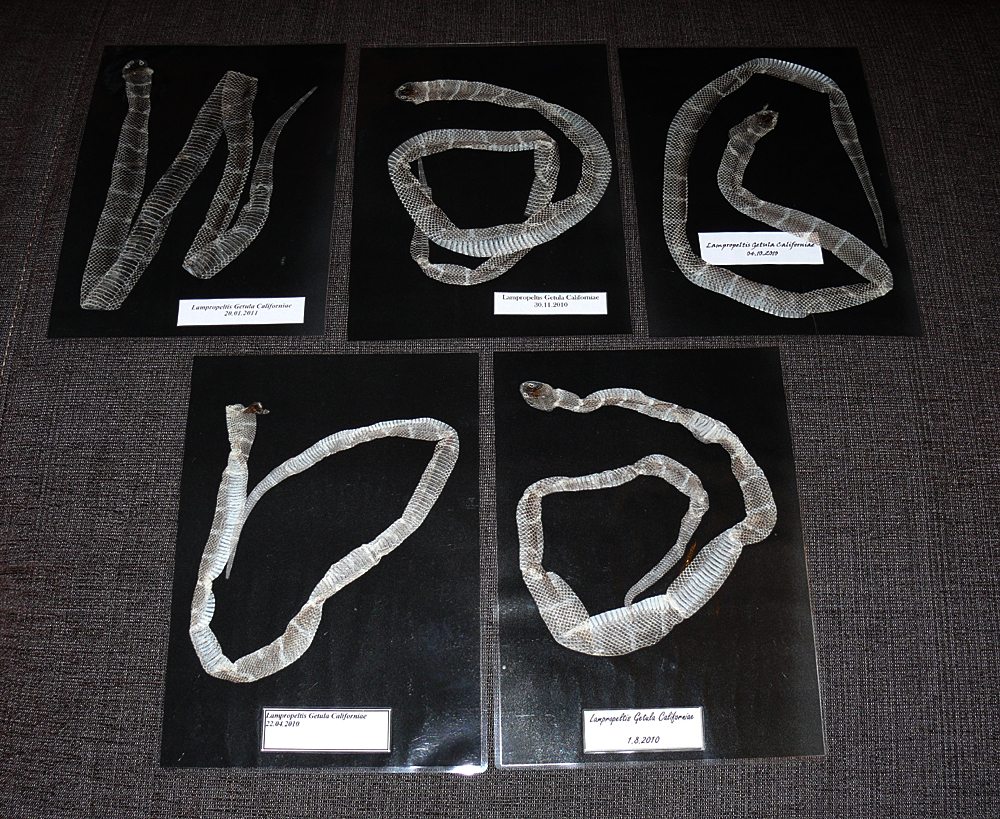 Zdraví hadi obvykle nepotřebují ke svleku vysloveně mokro. Pokud mají po celou dobu (od zakalení až po samotný svlek) v teráriu dostatečně vlhký vzduch, svléknou se dobře i na relativně suchém substrátu. Ovšem je pravda, že regiusky mívají často se svlékáním potíže a je dobré jim trochu pomoci vydatnějším rosením. Takhle pěkné svlečky mají opravdu málokdy a většinou je mají potrhané i při hodně vysoké vlhkosti :-|
