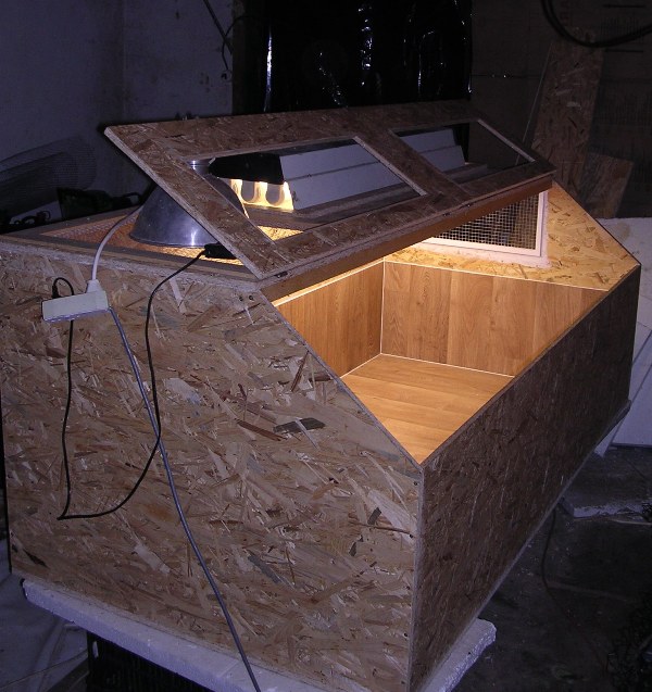 Ja stavim pro zelvy, zatim takhle:) 2x1x 0,75m, lino, cekam jeste na plexi. Ted bude nasledovat uprava zbytku sten bud naterem nejakou barvou, nebo duvilaxem a posyp asi (cervenym) poustim piskem. Pokud se bude vetrani jevit jako nedostatecne, koupim mensi armatury na zarivky a misto stavajici dam pletivo a armatury zadelam dovnitr.