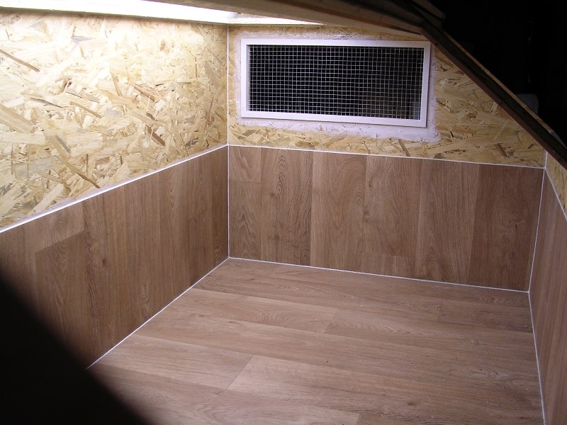 Tak důležitý ji při zadávání rozměrů na řezání počítat i se sílou desky, aby to pasovalo. A nezapomeň na výřezy na větrání. Já používal OSB 3 a pospojoval jsem to samozařezávacími vruty (na sílu desky 18 mm jsem používal 30 a 35 mm dlouhé). Normálně pomocí AKU šroubováku, zajede to tam většinou jako po másle. Pokud chceš, aby to bylo dobře voděodolné, tak nalakuj desky ještě před spojováním a do spoje ještě dej silikon (akvarijní), po sešroubování je ještě dobré vlepit dospod na dno lino (nebo sklo) a asi tak 10-15 cm vysoké pruhy lina (skla) na spodní části stěn.