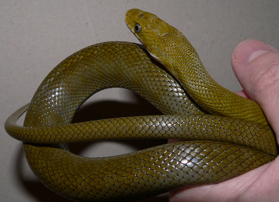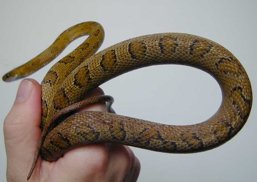 Jj. Zamenis h. hohenackeri jakéhosi "pseudoruského" původu občas nabízejí firmy i soukromníci, ovšem cena poměrně dost vysoká (na mě), propásl jsem kdysi nabídku okolo 6000 Kč/ks a teď už jsem je viděl za necelých 10 000::). Dají se určitě sehnat minimálně pod 5 000 ale chce to mít kontakt na východ. Už na tom dělám:-D. Ale že by se zaměnily se zmijema to dost těžko, ony se hodně podobají takové anerytristické situle, ale zmiji fakt ne. Z. h. tauricus je zřejmě nedostupná, nechová se a ani se nedá moc najít, i když víte lokalitu (o několika slibných místech vím, ale neprozradím, třeba je tam někdy najdu:-D). A je to můj snový had. Ta už by se možná trochu kresbou zaměnit dala, ale opravdu jen kresbou (mají někdy až takovou rezavěhnědou klikatici), ale tvarem těla a hlavy je to typická užovka. Jednu samičku u nás choval pan Vlček, který ji zakoupil v ČR ve zverimexu za pár stovek korun jako Telescopus fallax, zřejmě si nějaký blb, na kterého sedlo štěstí přivezl hada z j. Turecka z dovolený. No comment. Pokud vím tak samce dost marně dlouho sháněl a mám pocit, že nesehnal. Bogertophis rosaliae se velmi, velmi vzácně chová v USA a je hodně špatně dostupná, chytit si ji můžete na Baja California, ale moc jich tam k nalezení není. Senticollisky se ve třech poddruzích (triaspis, intermedius a mutabilis) občas na západ od nás chovají a myslím, že je má nebo aspoň měl i někdo u nás. Ale sehnat se dají, cena samozřejmě bude taky ve stovkách euro.