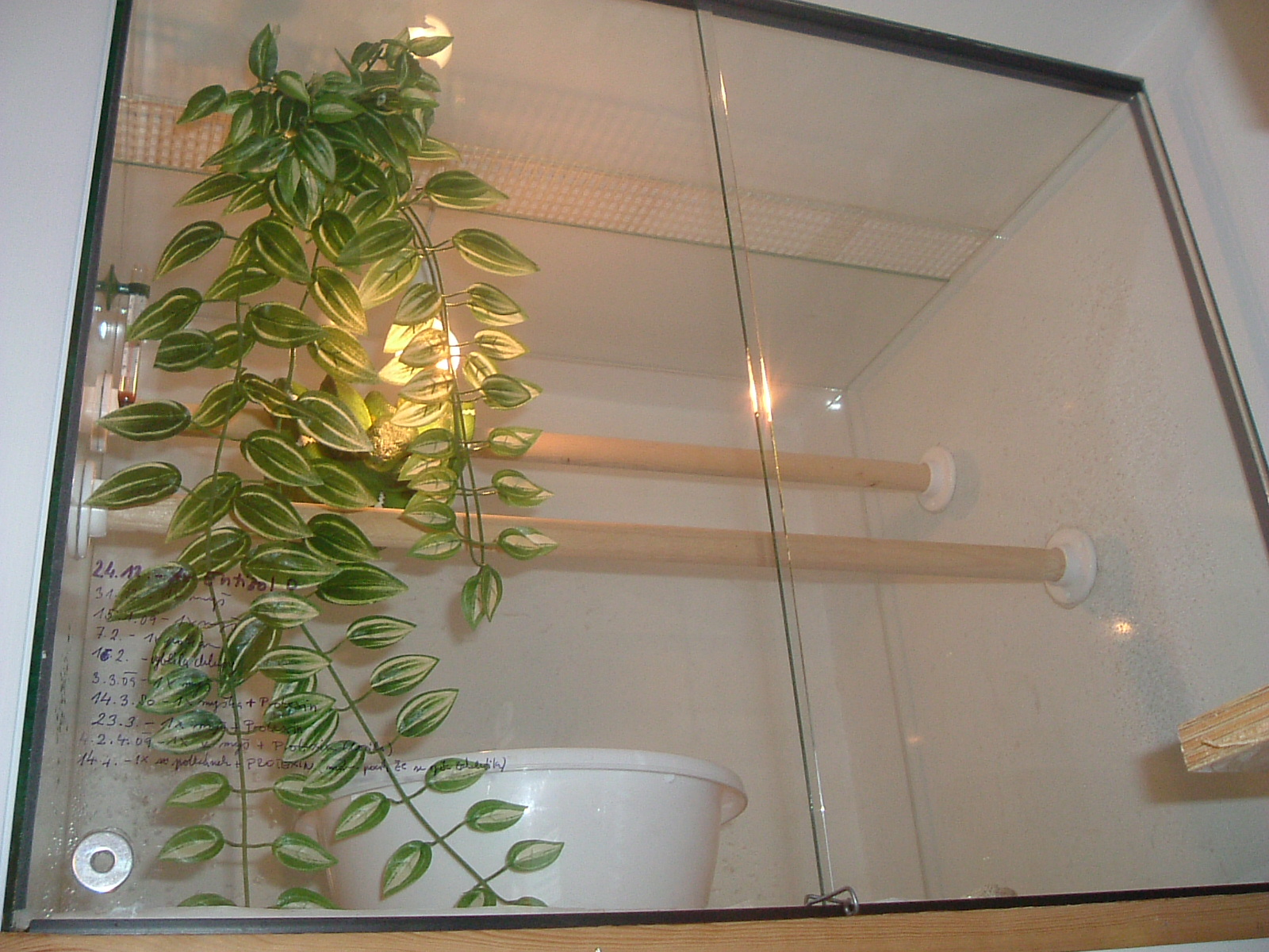 tak vlhkost neměřím , ale rosím jak sem psal , prostě zhruba 3x - 4x týdně jen jednou odpoledne vlažnou vodou cca 1/3 dna nádrže. Hady nerosím vůbec , jen ty co mám vypozorovaný , že potřebují trošku vyšší vlhko na svlek , jinak se vše svléká uplně perfektně. Snad z těch fotech vidíš to větrání