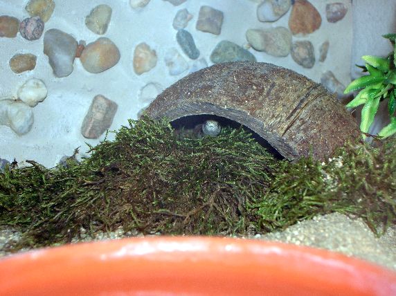 Tak na to, že jí budeš vídat málo si zvykni. Ta moje je celý den zalezlá nebo spíš zahrabaná v substrátu a vylézá jen po zhasnutí světel. Zkusím sem co nejdřív vložit foto té mé, snad se mi to podaří.