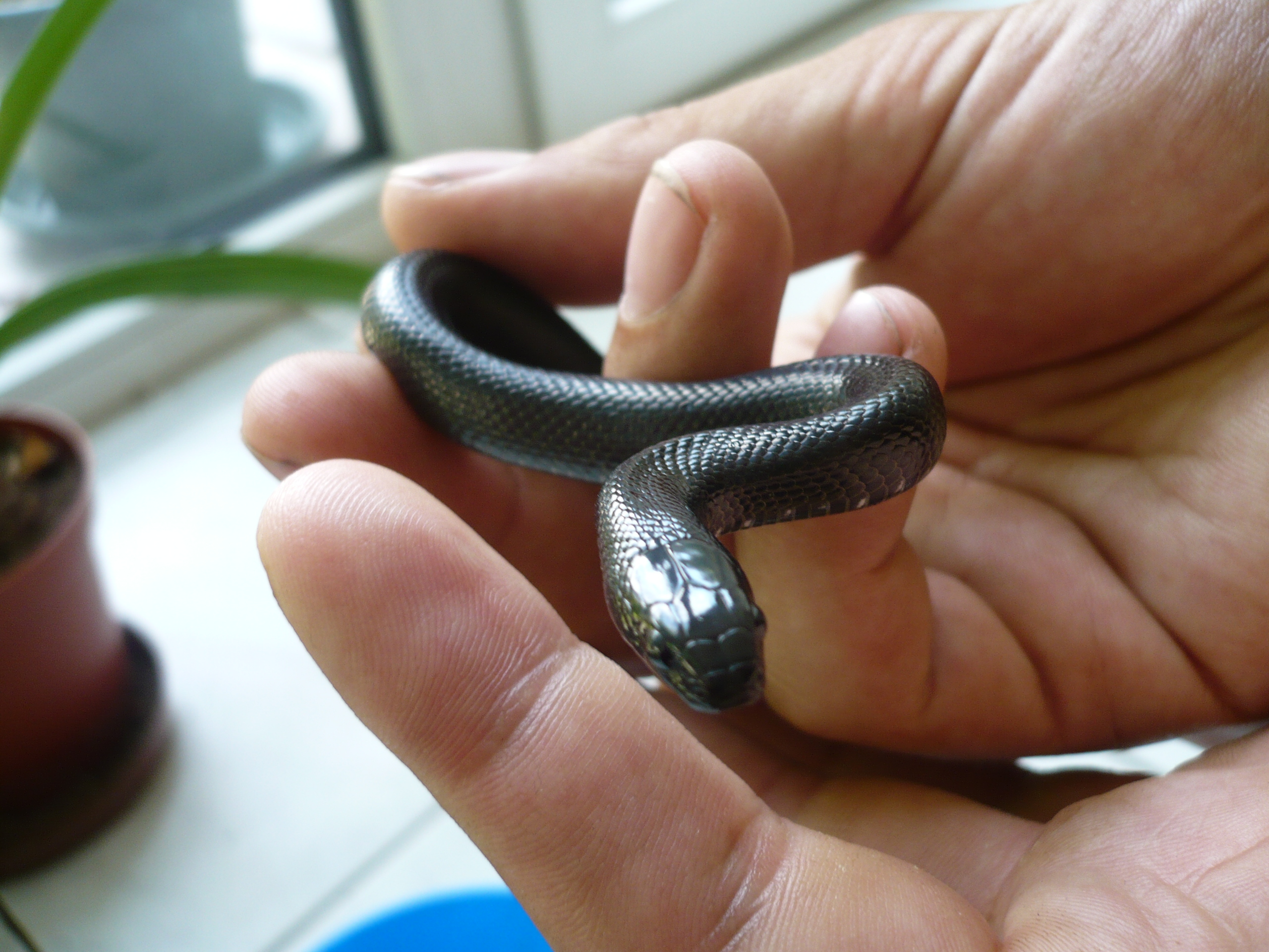 Zdravím, jsem terarista začátečník (pro někoho možná zděšení, ale nějak se začít musí...) a chtěla bych se pochlubit svým jedincem. Mám ho doma od konce března, takže se spolu stále ještě seznamujeme. Žere od počátku samostatně a to jak živou tak mrtvou potravu (nedávno měl dodavatel dovolenou, tak jsem musela koupit zamraženou stravu). Zatím měří okolo 40cm, včera se trošku zakalil, tak se bude v nové domácnosti poprvé vslékat. Lampropeltis alterna blairi, samec, 08/2008, chov. ZOO Jihlava