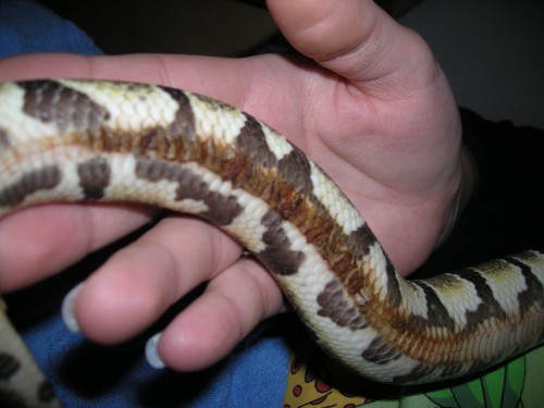 Ono by spíš bylo především lepší hlídat zvířata při krmení. Nechat potkana třeba přes noc u hada je o takovéhle zranění přímo koleda. Mám taky nějaké fotky ohlodaného hroznýše "ukradené" z webu, ale ta regiuska je předčí. Opravdu žalostný pohled.