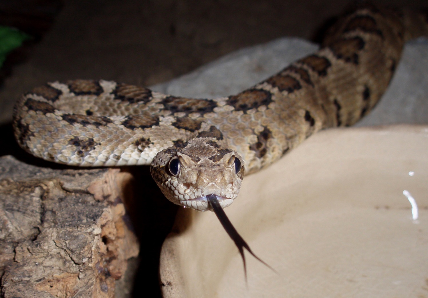 Fotka z návštěvy u kamaráda, je to myslim samička, na tyhle viperky a cerastesky mám slabost, ale doma je nemám(zatim?)