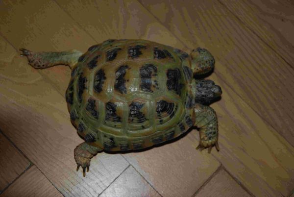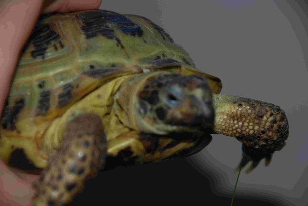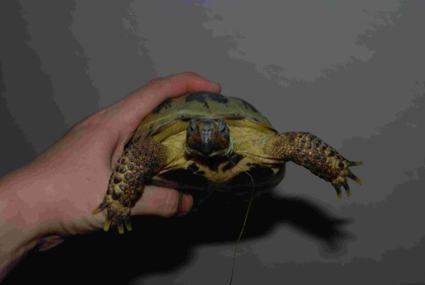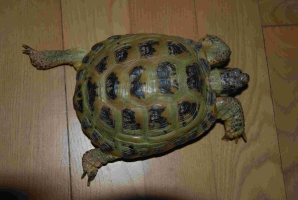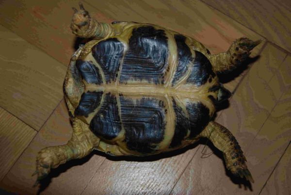 Málem bych zapomněla: nejspíš je to sameček - vypozorováno dle agresivního chování při pokusu "pastvy ve výběhu" s jinými želvami u kamarádky. Chtěla jsem mu u ní umožnit letnění, ale byl natolik agresivní, že se musel vrátit do svého terária v bytě a z letnění nic nebylo. Škoda.