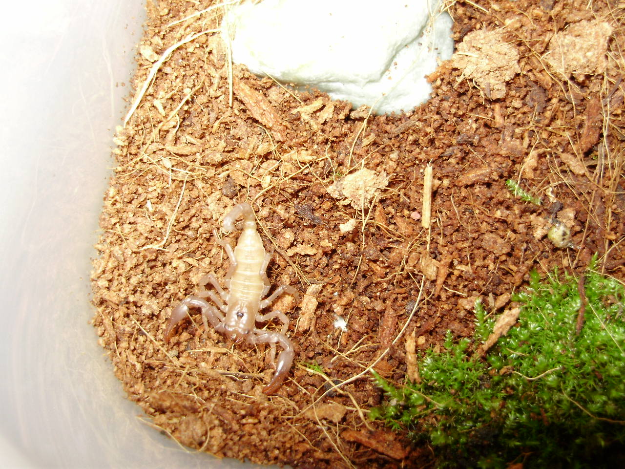 chroustal: Ty lychase máš v tom v čem si je fotil?? Nebo je chováš v něčem jiném?? protože jestli ne, tak bys tam měl mít aspoň nějakou kůru a nějaké rostliny, jelikož to jsou štíři kteří rádi šplhají a schovávají se pod listy.