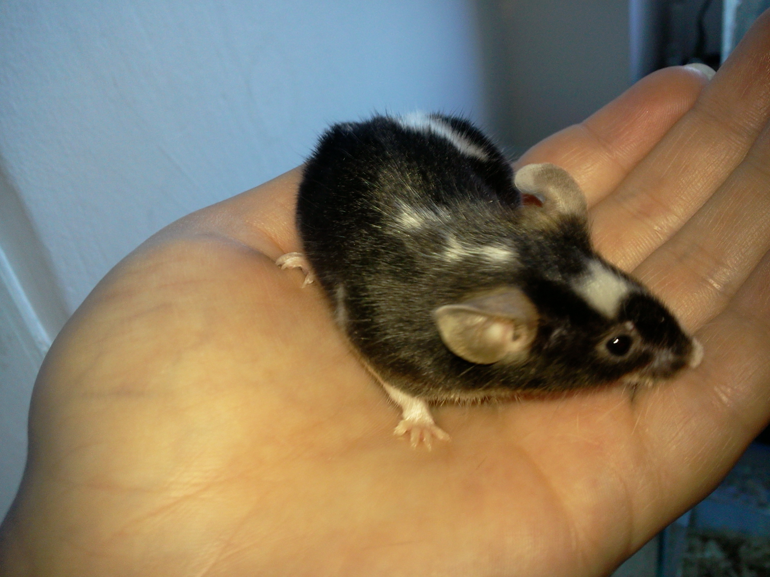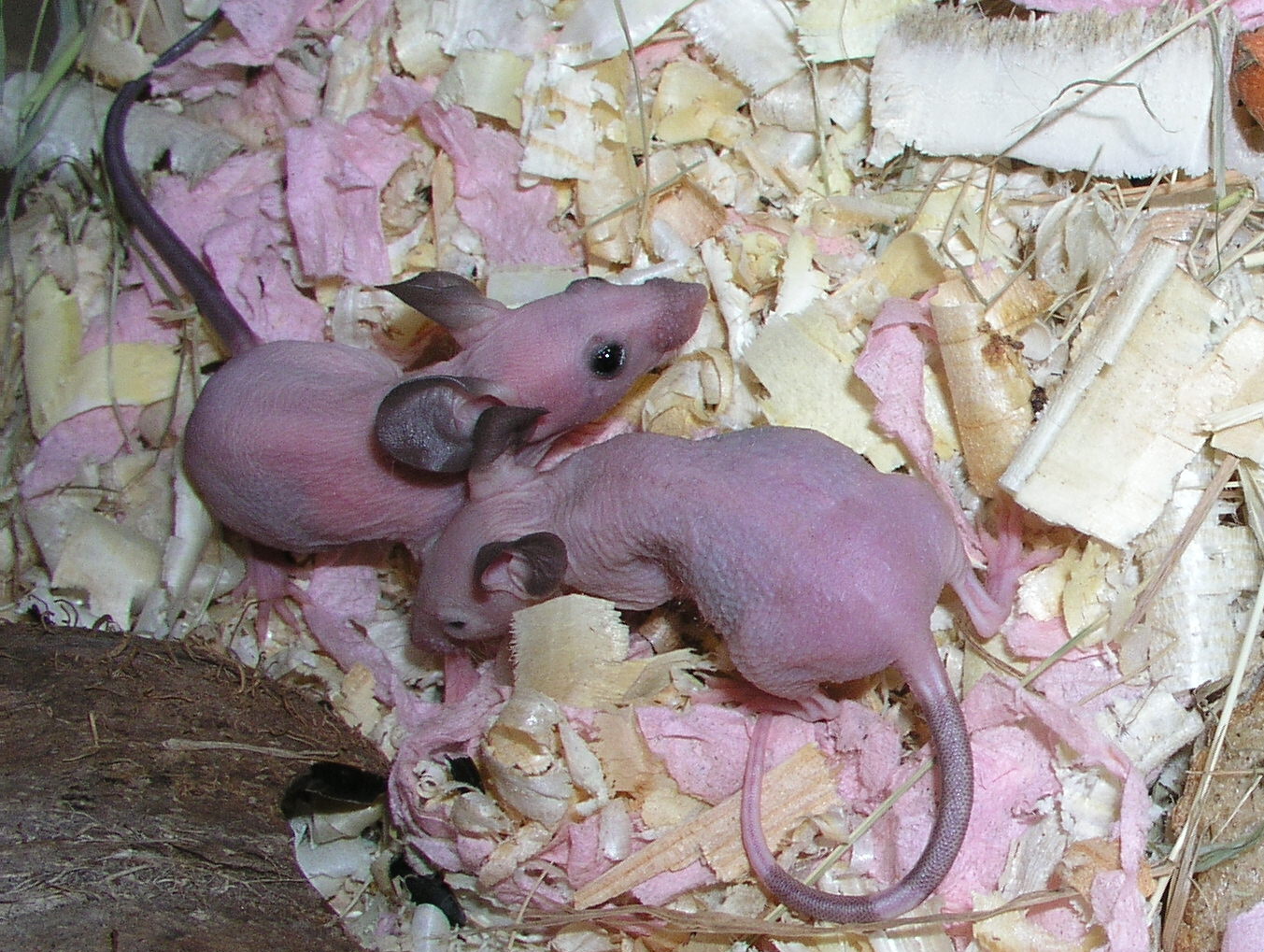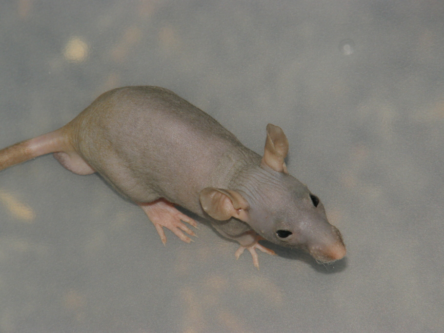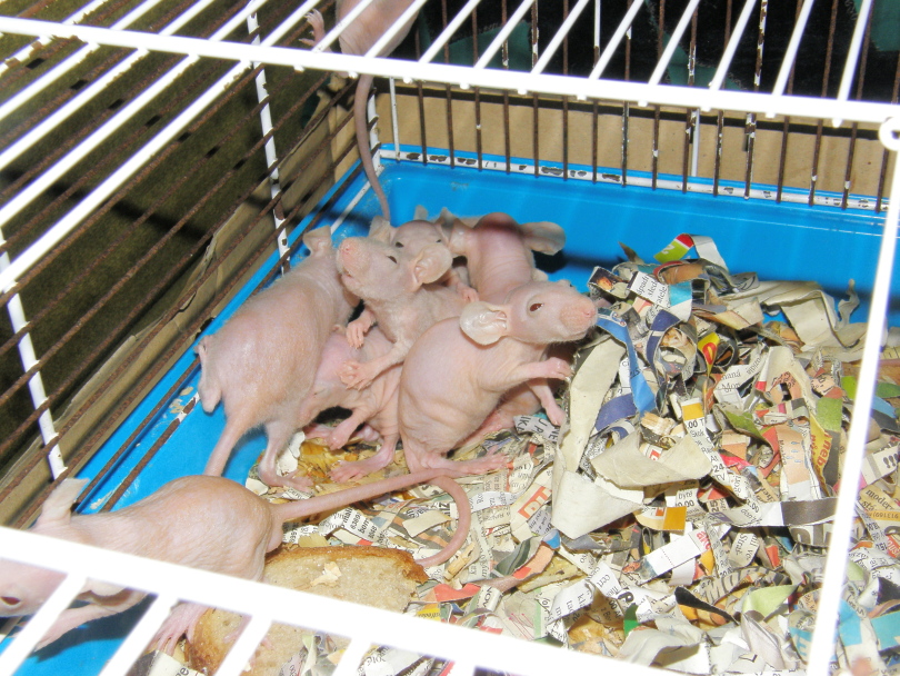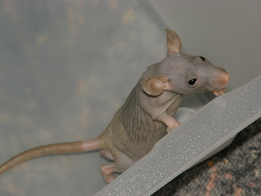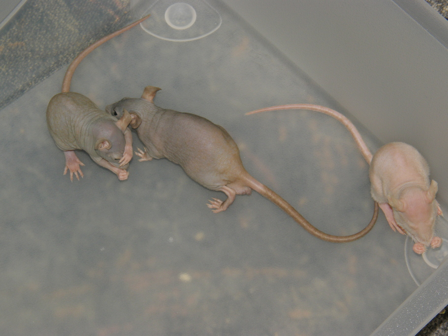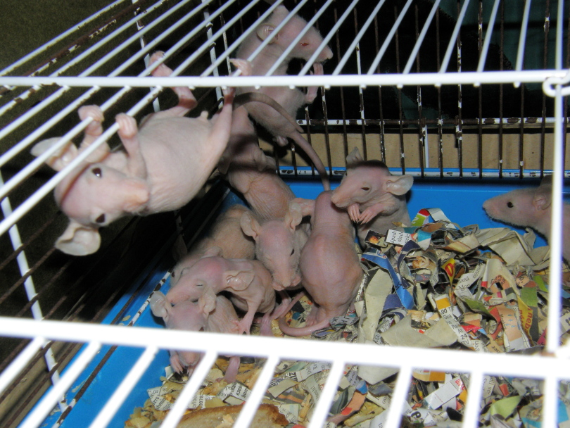 Tak tahle myška se narodila bezsrsté samici a strakatému samci