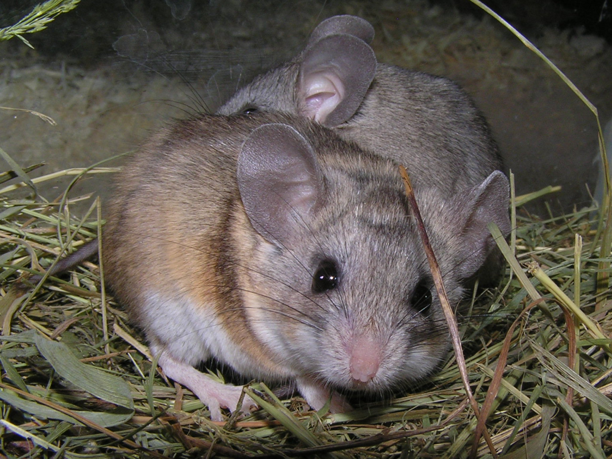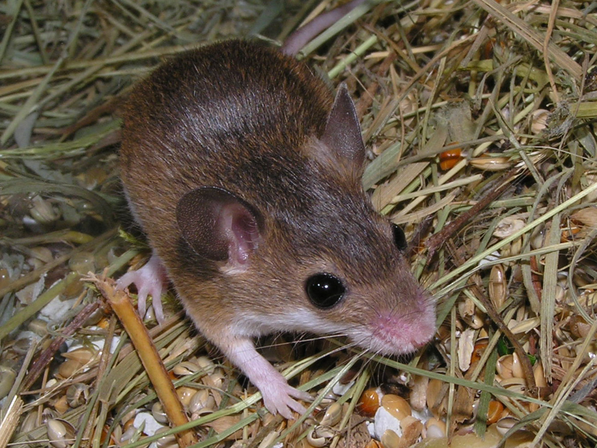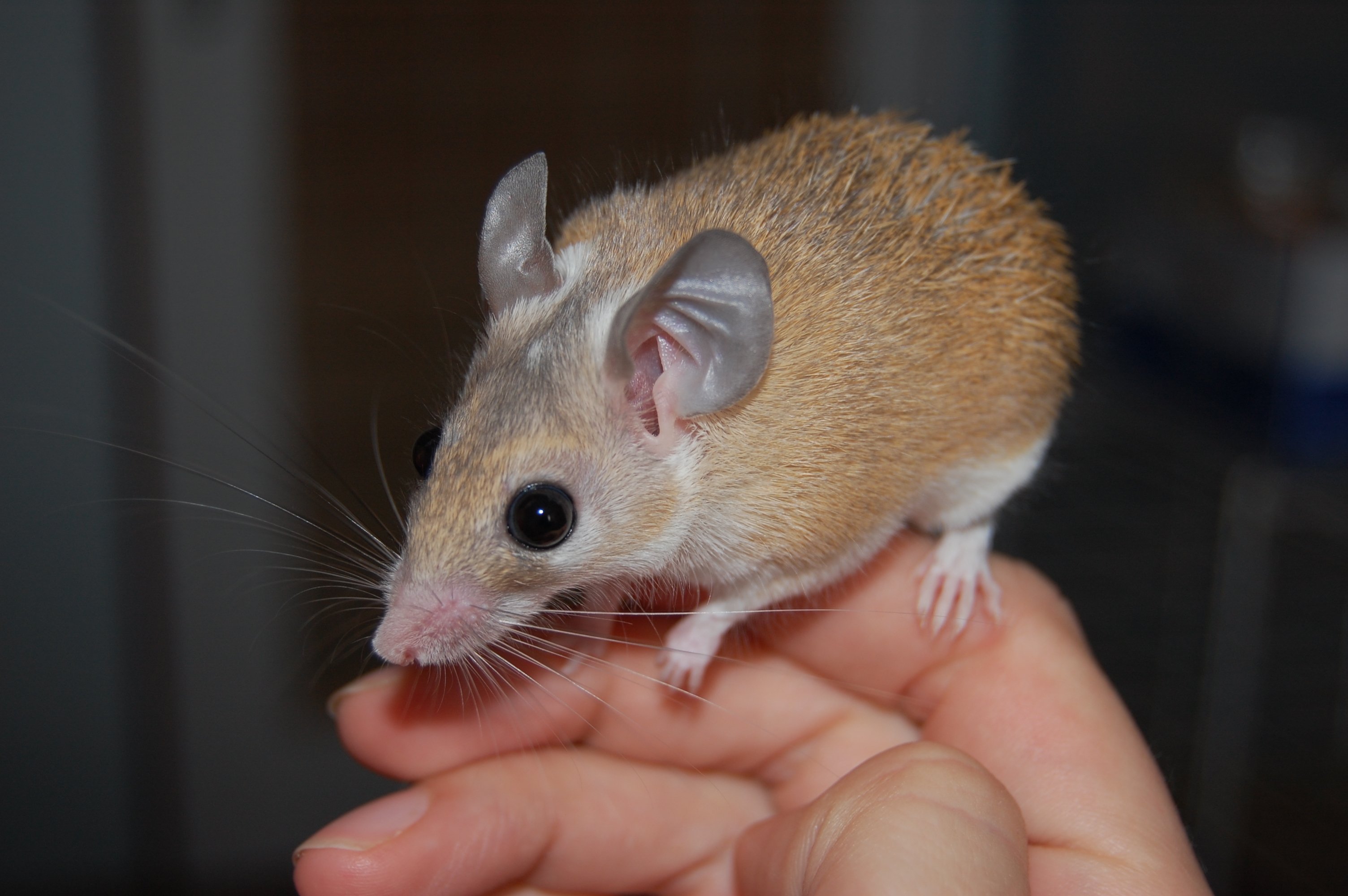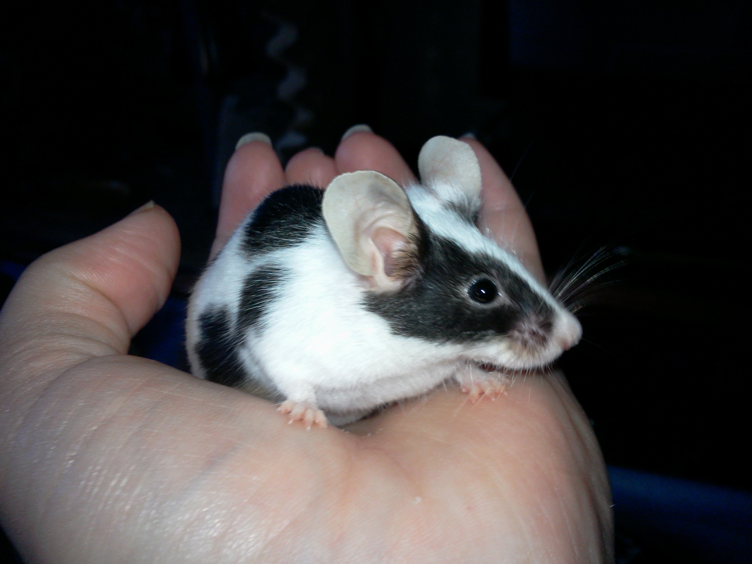 Tak tahle myška se narodila bezsrsté samici a strakatému samci
