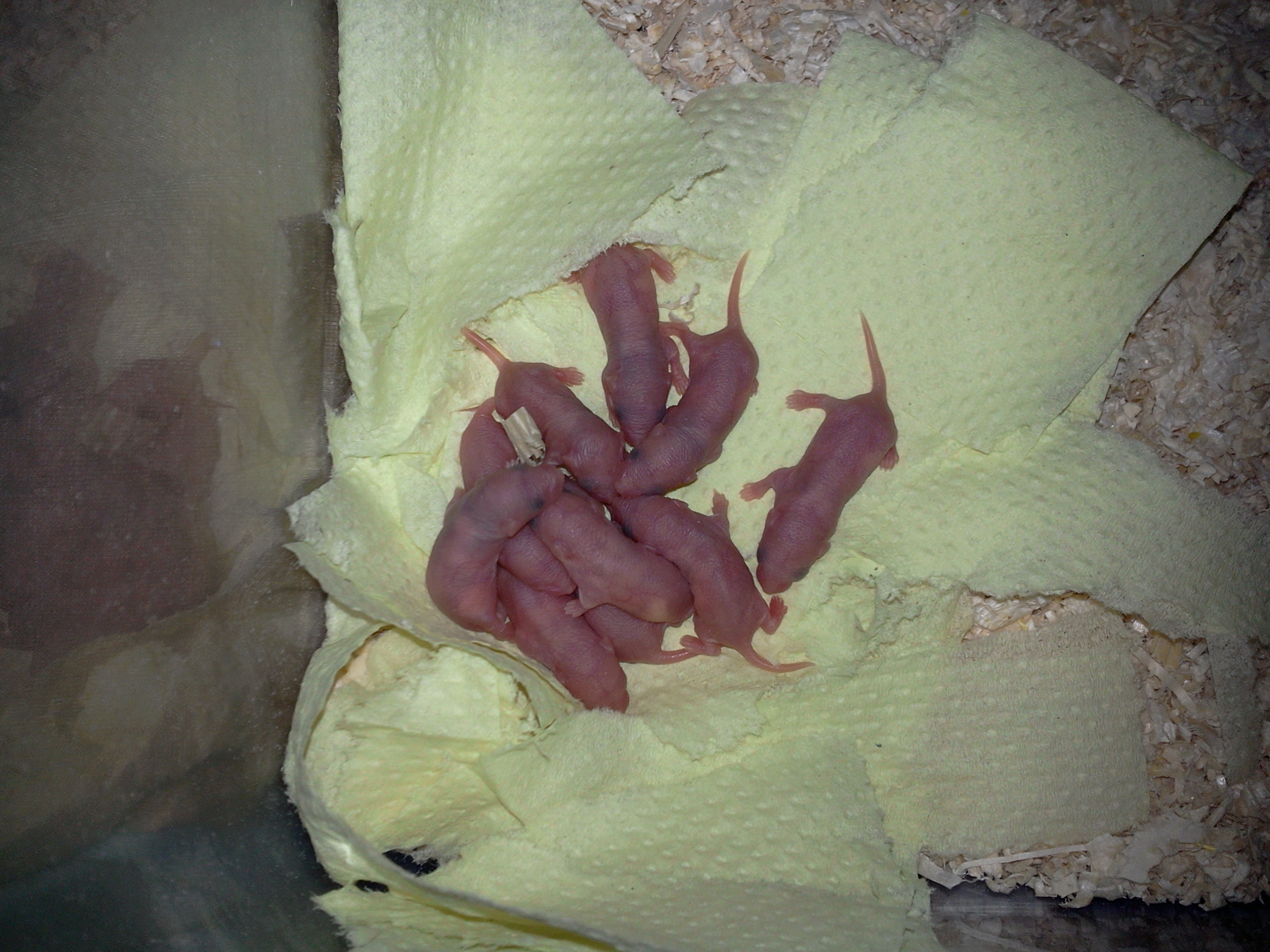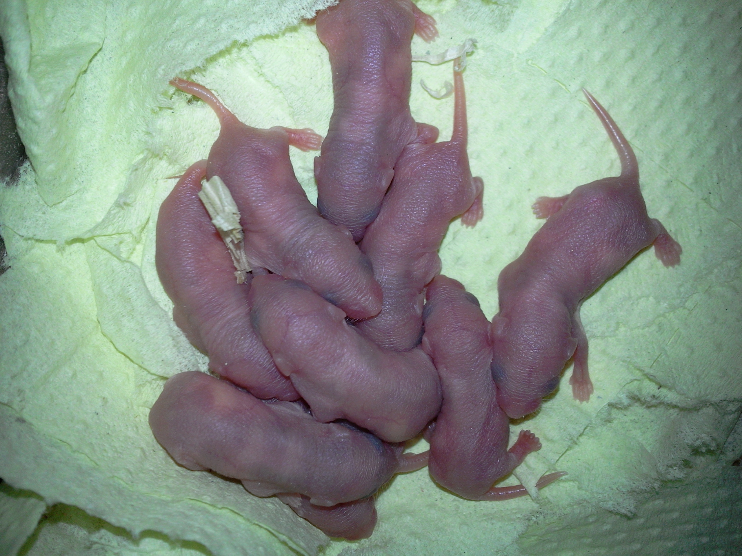 Barevné myšky. Myšanda měla zrovna první vrh. Prcků je deset, sem zvědavá jak se zbarví.