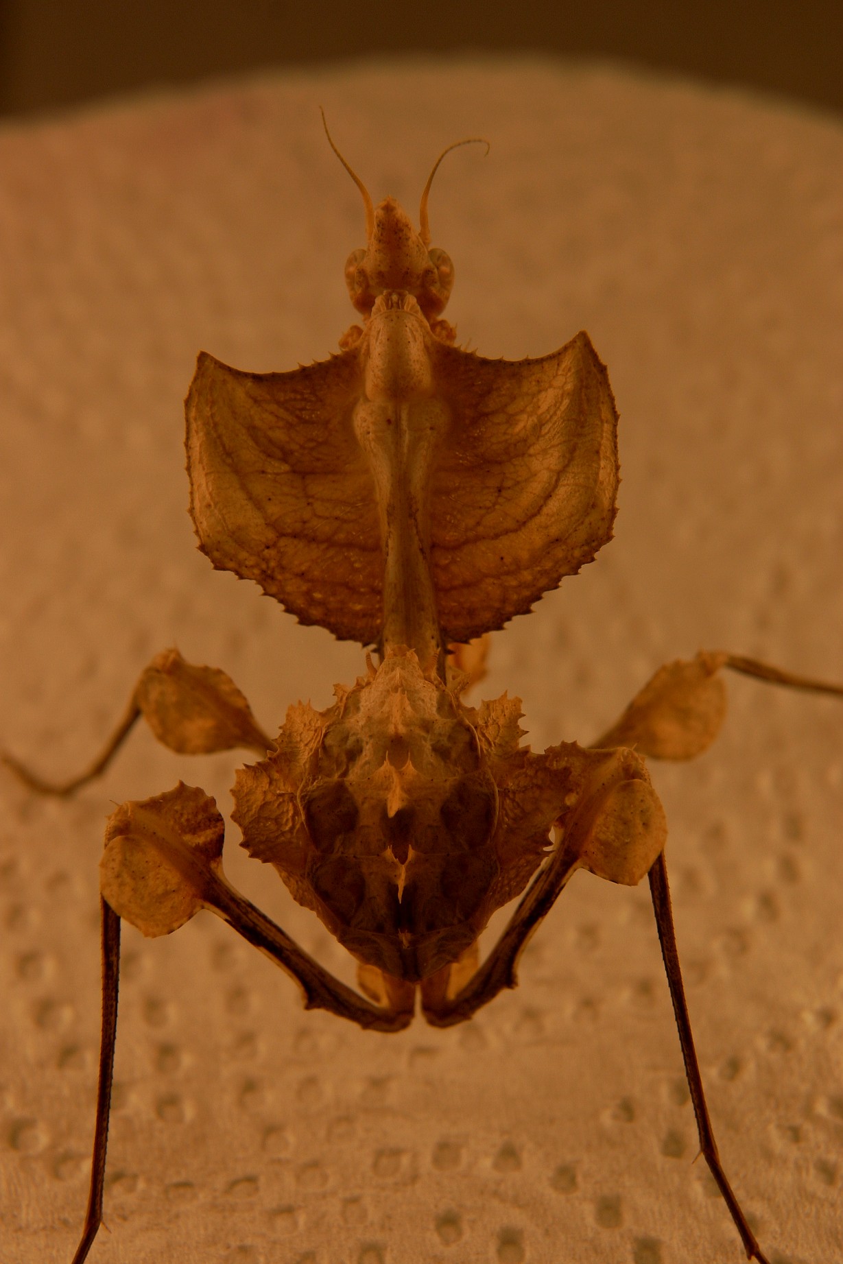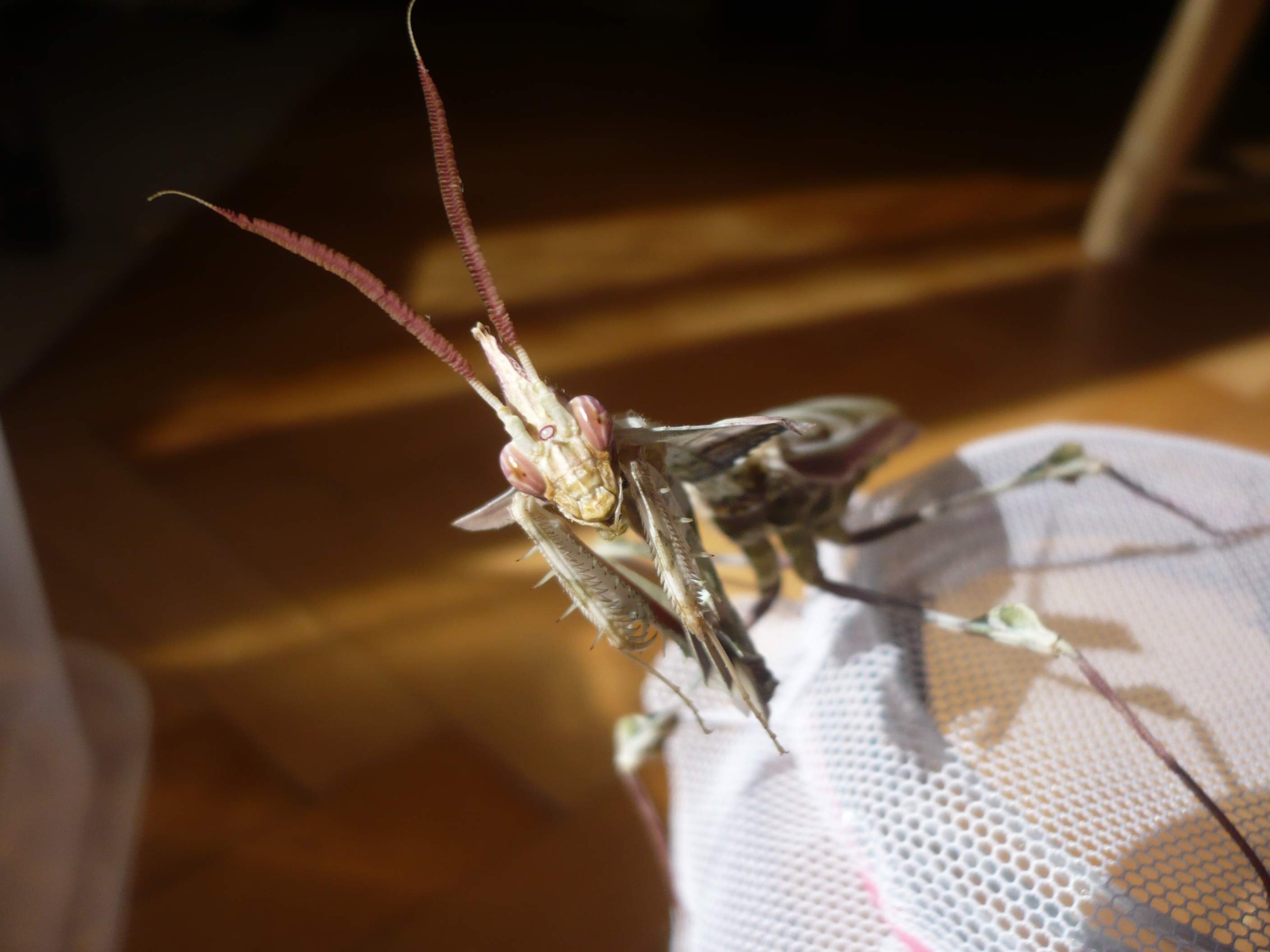 Samice Phyllocrania paradoxa, krásně zelená, bohužel si po svleku ohla svůj krásný výrustek :(