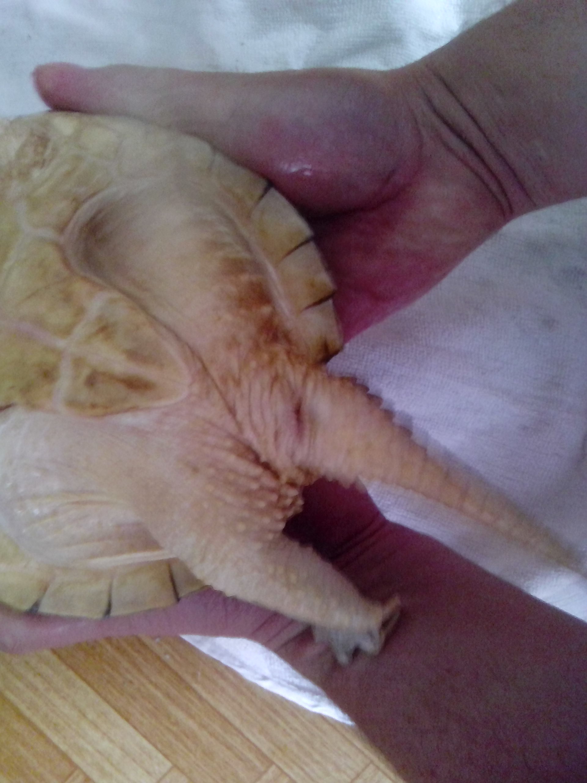 Docela dobré krmení (jen je nutné tím nakrmit v kbelíku a želvu opucovat, hrozně to sviní vodu), jsou drůbeží krky, pro mláďata roztlučené kladivem.