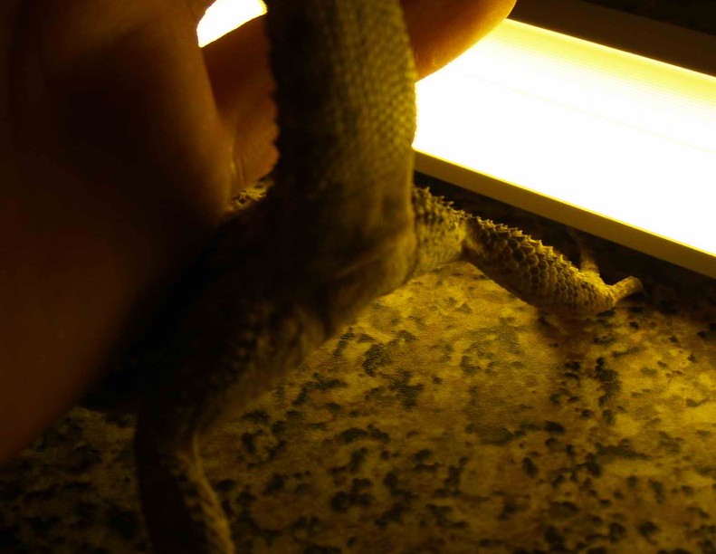 využiji tohoto vlákna. Nejsem sám schopen určit pohlaví jedné agamy vousaté. Tvar hlavy má přesně někde mezi mým samcem a samicí. Stejné to je i se zúžením ocasu za kloakou. Přijde mi, že nevidím při ohnutí ocasu hemipenisy, ale nadruhou stranu má