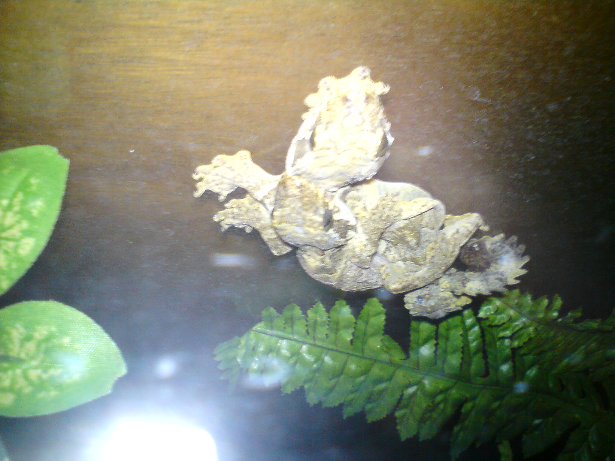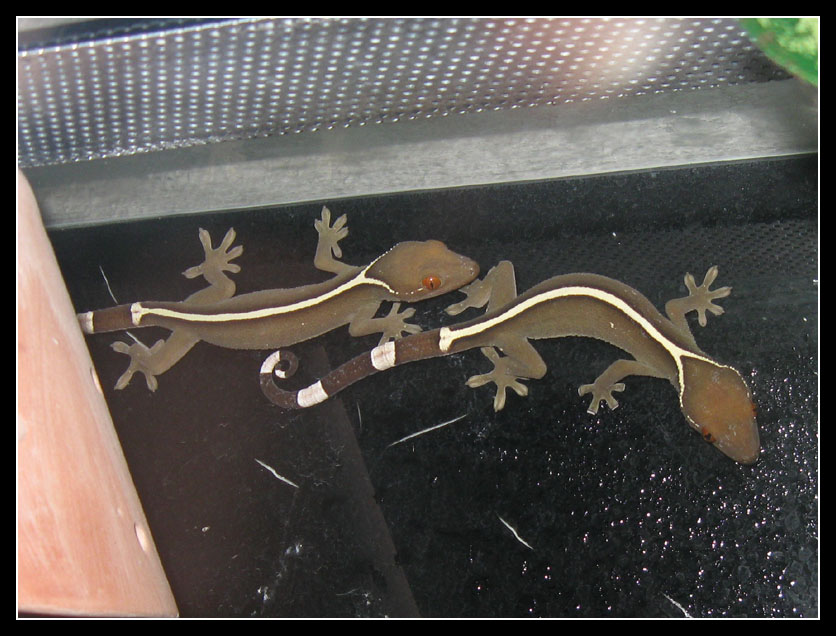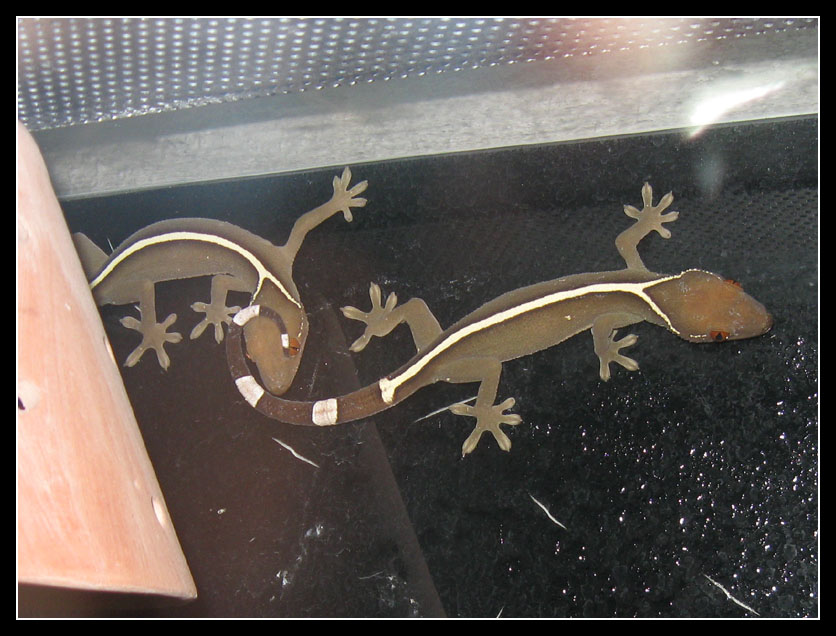 Ptychozoon kuhli,kopulace 7.12.2009,6:15 hod.Nebyl po ruce foták,tak hold JEN telefonem.