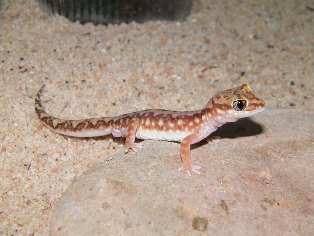 Tak také se jdu pochlubit, sice fotky z mobilu, ale snaha byla Toto je Coleonyx Mitratus, pul roku starý: a toto je Pachydactylus Tigrinus, jedno z mláďat: Toto je Pachydactylus Bibroni, též mladí jedinci: