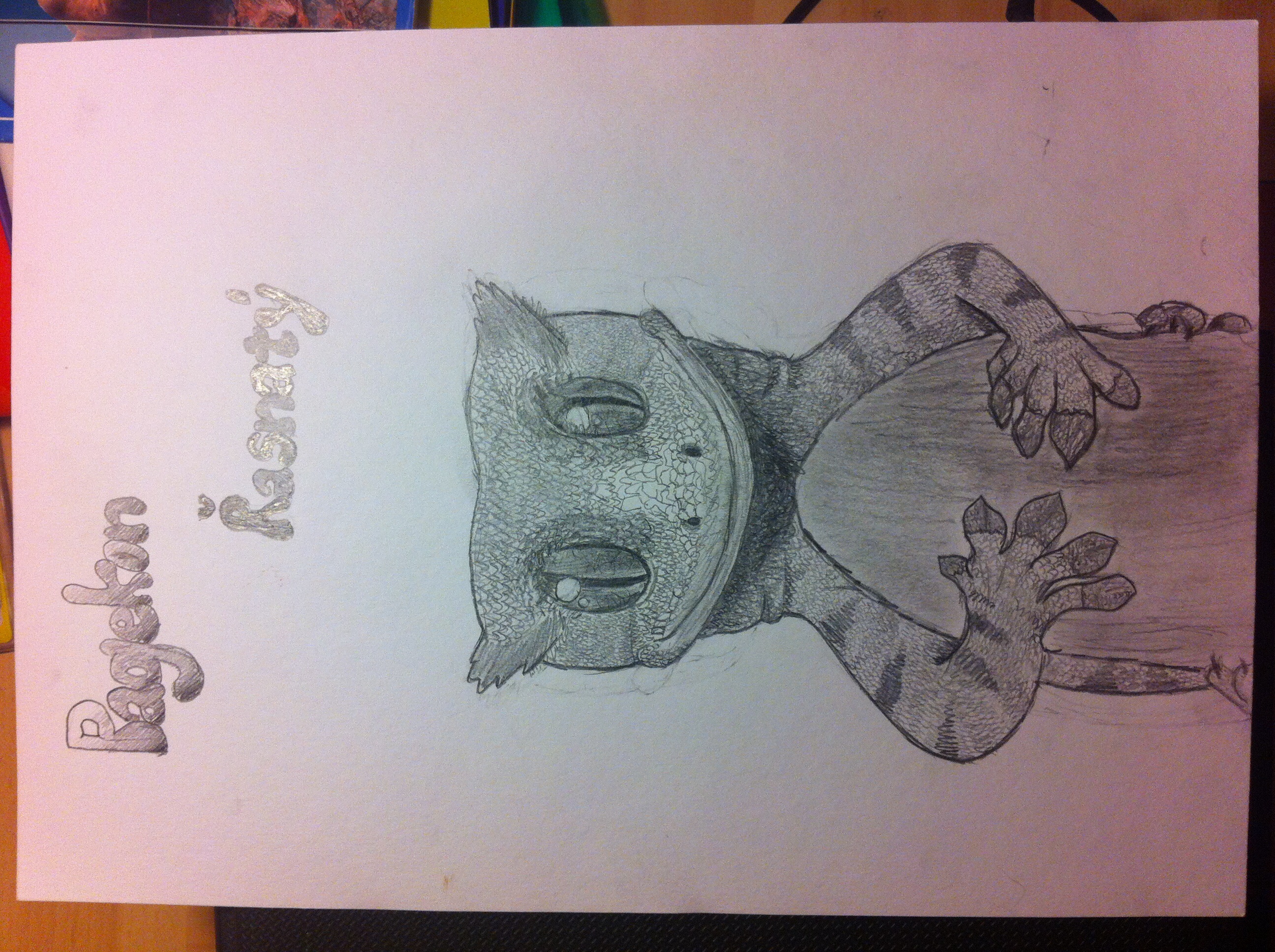 Já vím, ten ocas je strašnej, ale na tom obrázku (kterej je ve skutečnosti asi 4× menší) nejdou na ocase rozeznat šupiny, pouze jsou zřetelné 2 barvy - černá a žlutá, takže jsem ten ocas nakreslil tak, jak jsem ho v knize viděl a ve 2 ráno se mi nechtělo zapínat počítač, abych se podíval na google na další fotky, jak ten ocas skutečně vypadá. Ale jinak dík.