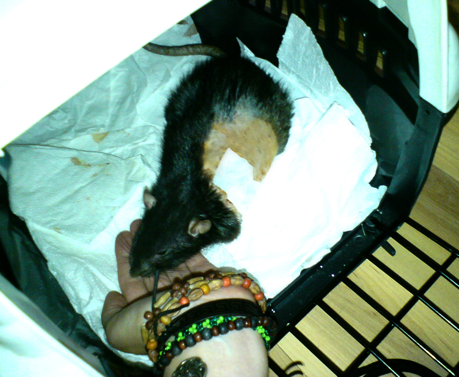 No vidíš to, já jsem dala minulej tejden sedum stovek za operaci nádoru potkana Hadaři chtěli, abych jim ho dala na zkrmení, ale obávám se, že toho by sejmul leda krokodýl A už si zase vesele běhá...