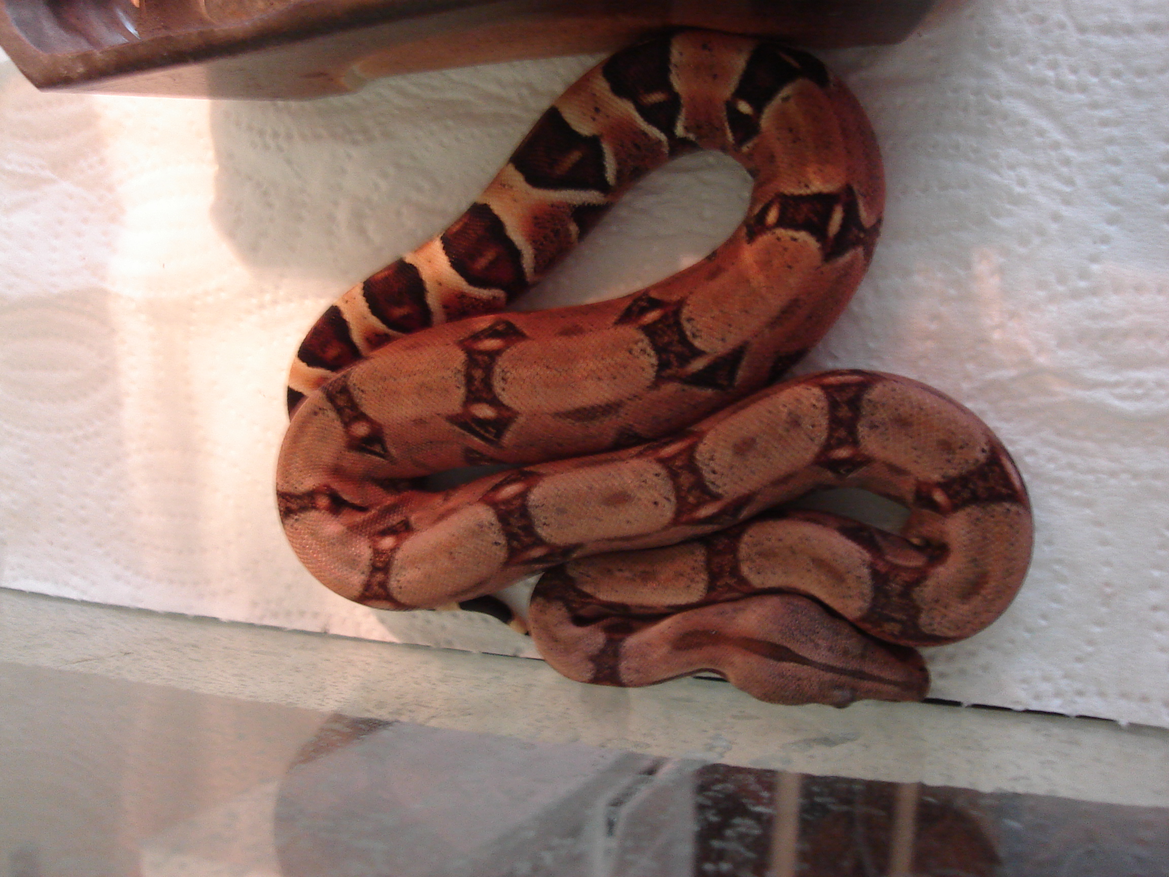 Jen trochu doplním Hypo - hypomelanismus je částečná ztráta melaninu, vyskytuje se poměrně často i u přírodních populací, známí jsou Hogg Island Boa či Pearl Island Boa (Boa constrictor sabogae), ale je znám i u dalších lokalit, jako je Nikaragua, Crawl Cay - Belize, Sonora - Mexico atd.. Salmoni jsou hypomelaničtí jedinci vzniklí v zajetí, ale jejich původ již není stoprocentně prokazatelný, pravděpodobně určitou roli při jejich vzniku hrály sabogy. Jak psal Krokodýl, je to mutace geneticky ověřená a selektivním chovem dále prohlubovaná.