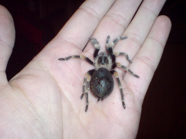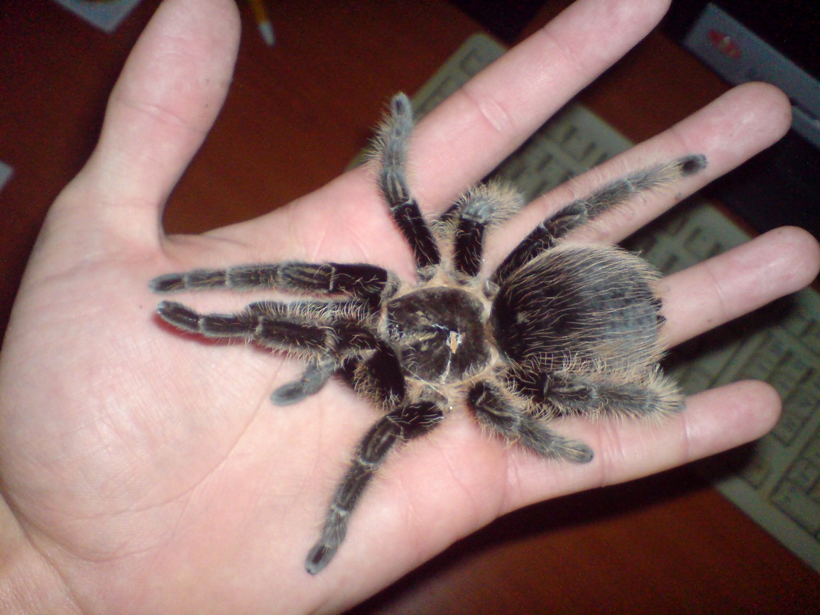 tak zas něco přidám ať to tu nezapadne prachem :) Toto je 8. sv. určená samička B. vagans, můj první sklípkan - Božka :D vím tahat se nemají :D Cyriocosmus elegans 4. sv. (a moje stařecká ruka :D:D:D)