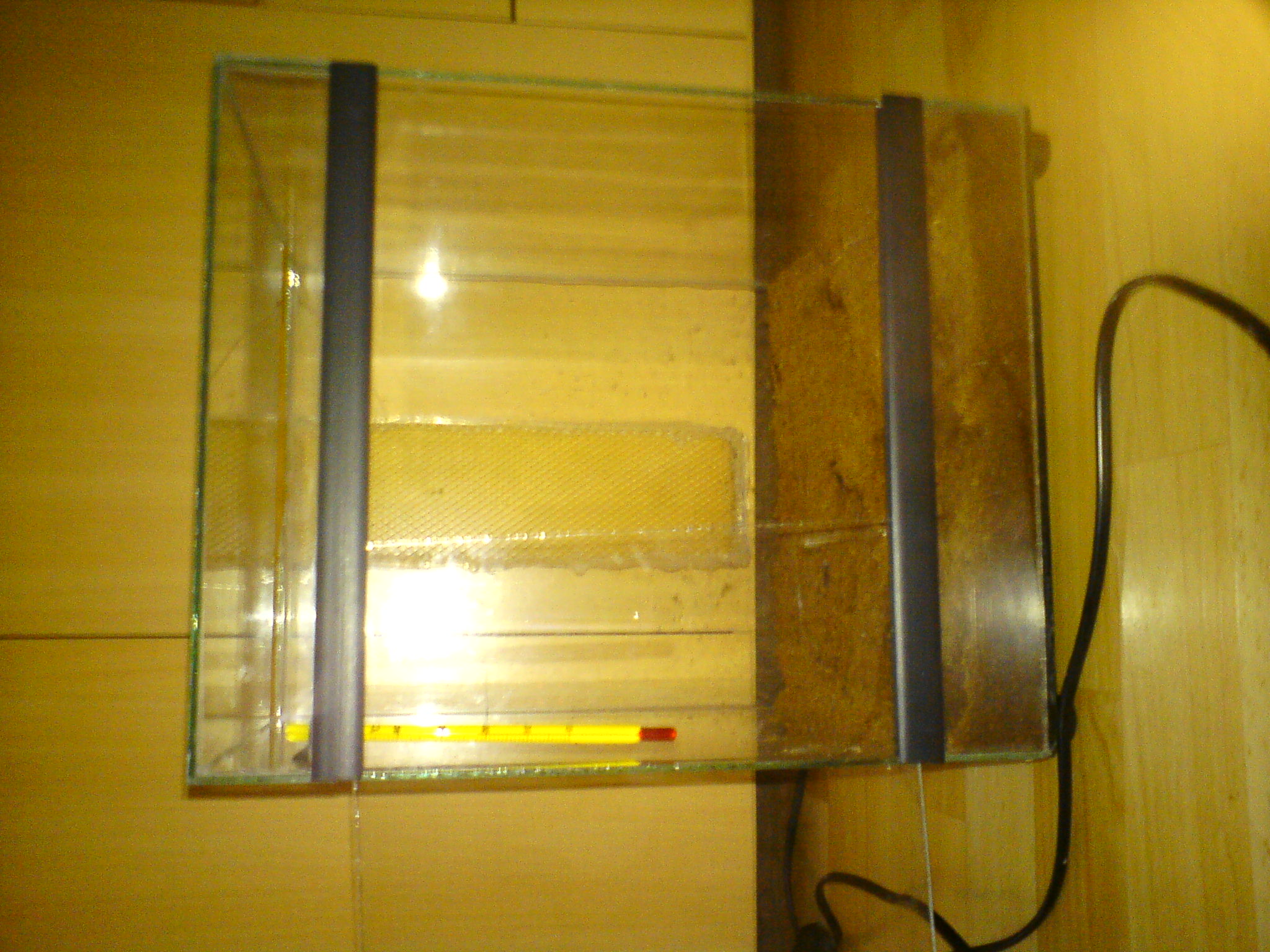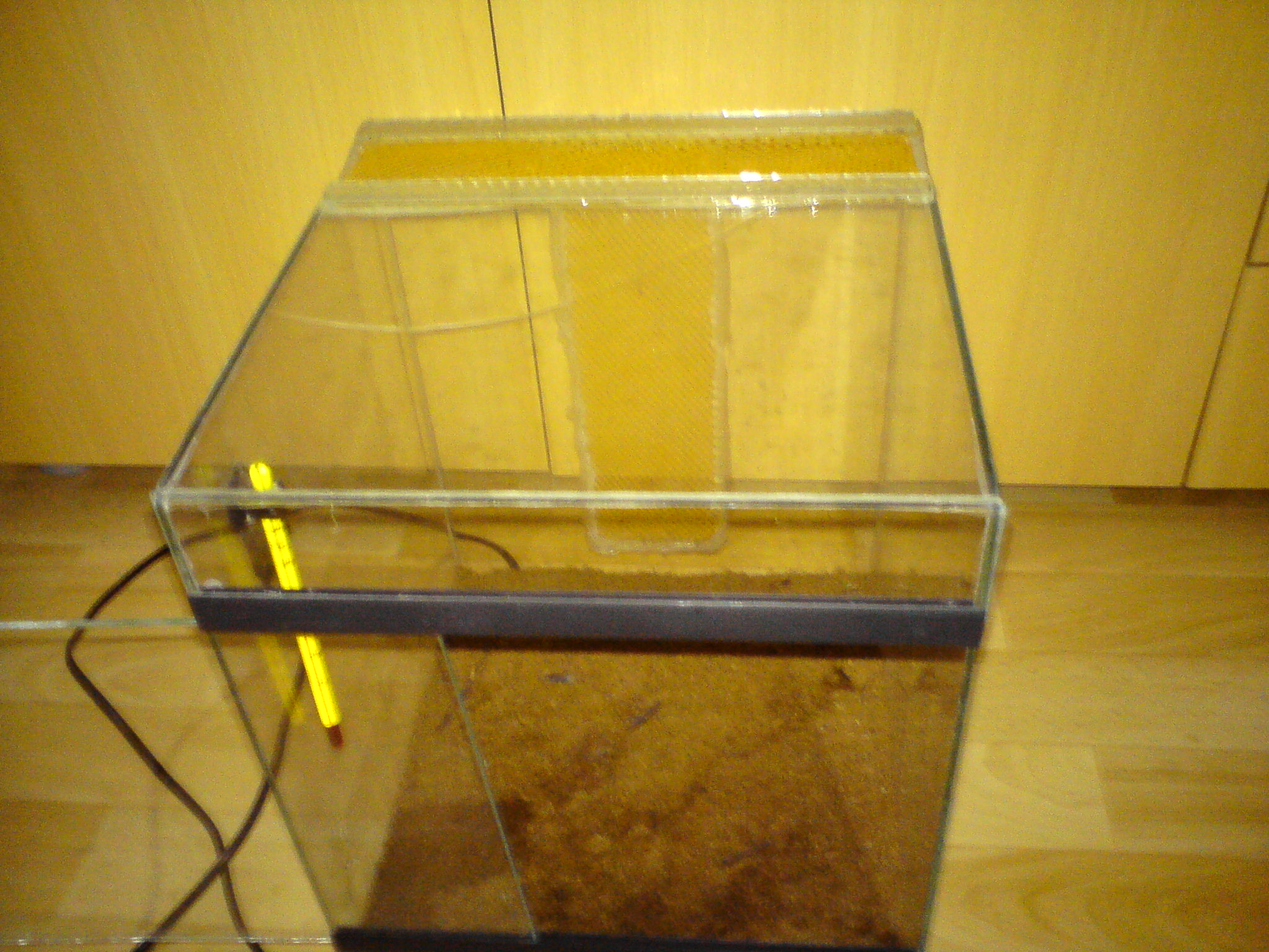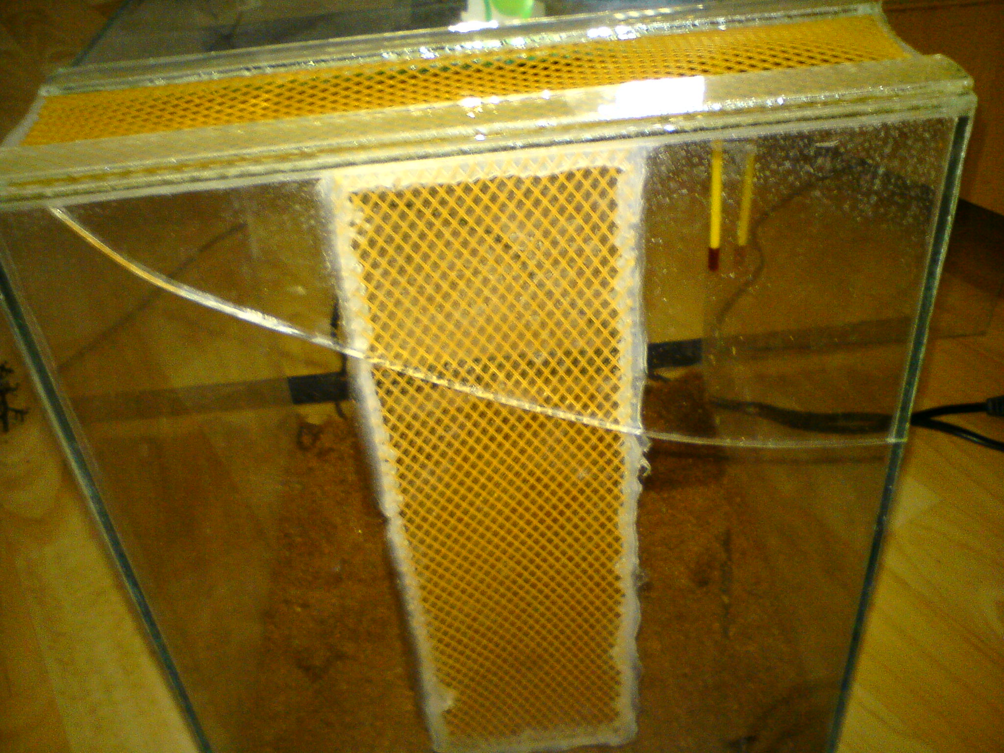 teď sem doma našel staré terárko po kudlance 25 x 25 x 30 (d x šx v). Má dokonce na spodku funkční topnou deskou. Ale musel bych ho předělat, zvětšit větrání, protože je hodně malé a dřív, když sem v něm měl párkrát kudlanku tak se tam objevovala plíseň. Na zadní stěně je sice prasklina, ale to by snad nevadilo, ale prasklina je i na dně, ale tu sem přelepil několika vrstvami lepící pásky, tak by se snad vlhkost neměla dostat k topné desce. Na zadní stěně je také přilepená síťka, ale tu bych oddělal. Větrání je široké pouze cca 4,5 cm. tak bych ho zvětšil na těch 10? nebude to moc? Ještě bych udělal větrání pod dvířky, ale je tam hrozně nízký práh a nahoře je zase moc vysoký, takže bych to udělal tak, že bych horní práh vyjmul a horní drážku na dvířka bych přilepil přímo na horní stěnu, ten práh bych nechal tak o 1 cm zkrátit, oddělal bych tu spodní drážku, kousek od spodního prahu nalepil ten původně horní a na to drážku, takže by tam byl pouze dolní práh se škvírou uprostřed. Ale ještě nevím, co bych tam nalepil jako větrání, děrovaný plech, ani nerez. pletivo nemám, a ani nevím, kde bych to u nás sehnal, mám pouze takový jemný hliníkový pletivo, ale je dost měkky tak bych se bál aby ho sklípkan neprokousal. Tak co šlo by to takhle??