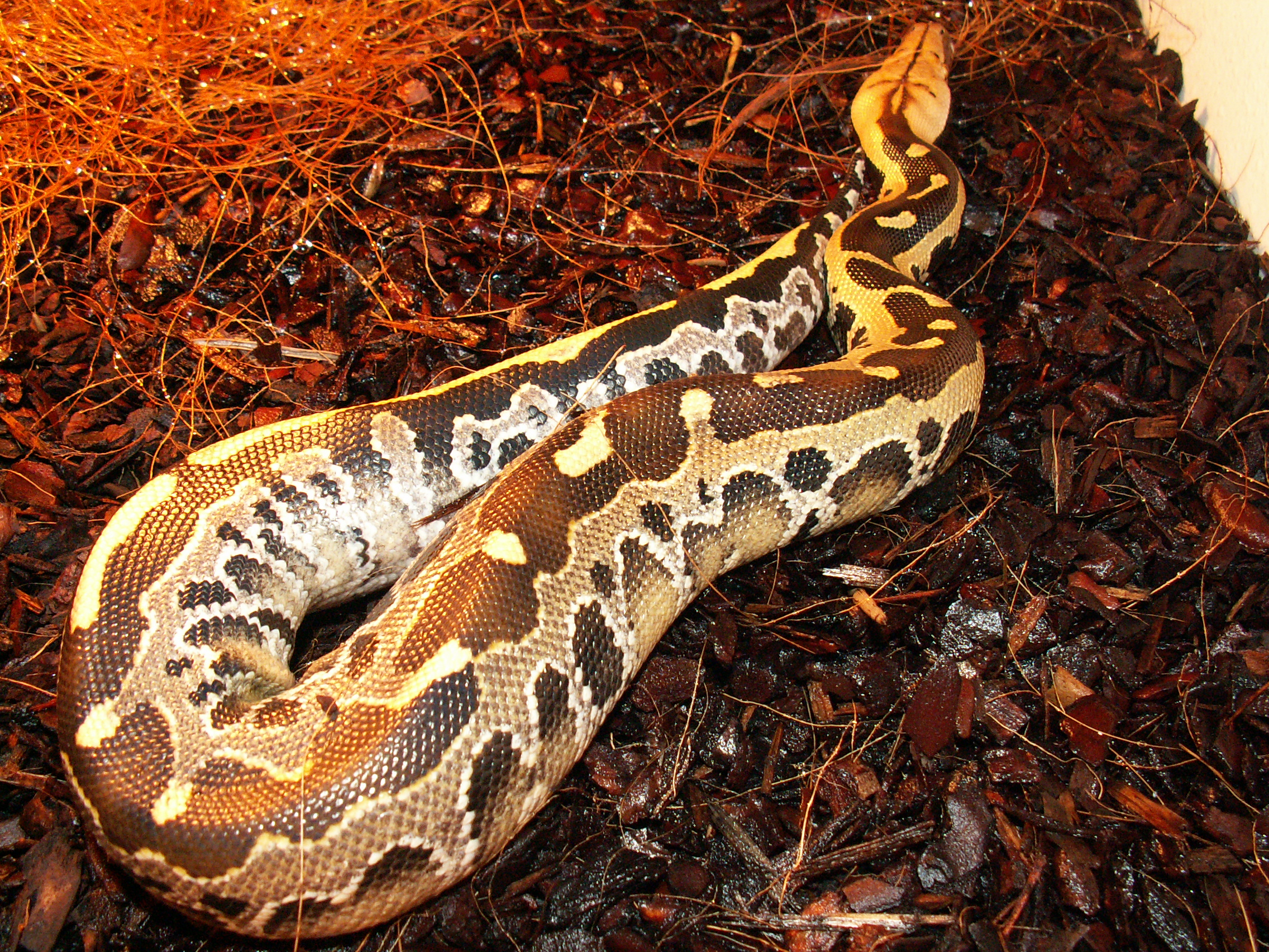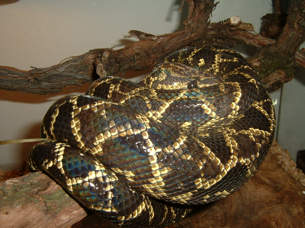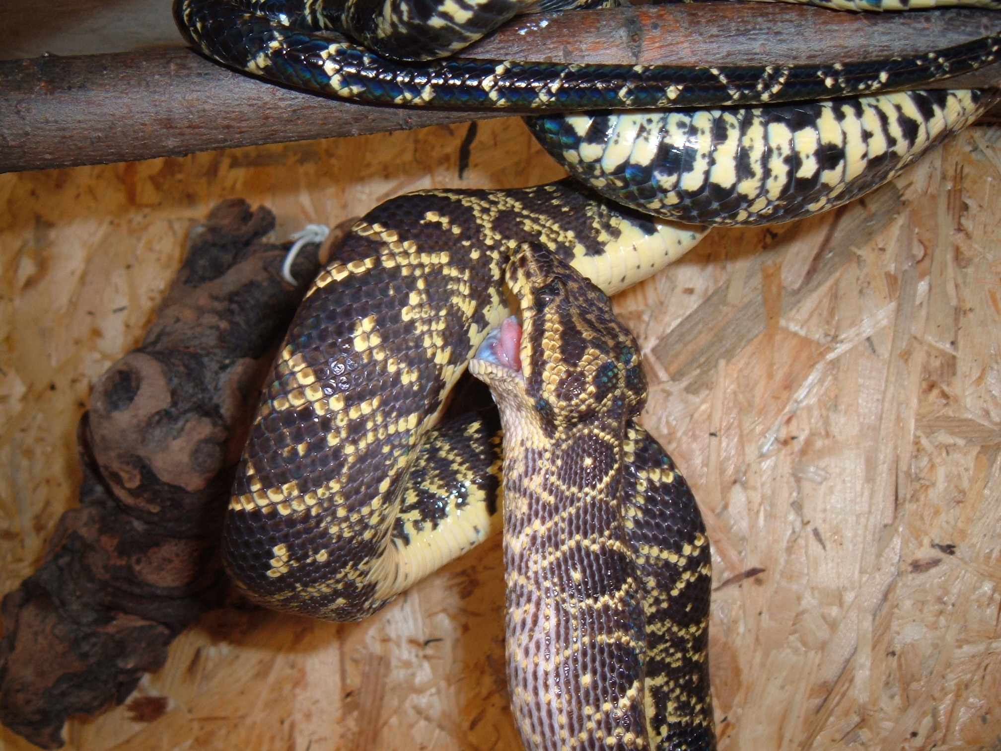 4. ??? Bohužel další ukázka toho, jak kdysi běžně chované druhy upadají v zapomnění. Kubánci byli kdysi s maurusema a královákama asi nejčastěji chovaný druh hroznýšovitého hada u nás. Určitě je to škoda, ale v přílivu nových, více "exotických" druhů, se není co divit. K těm formám - Jaya Pury se začaly množit teprve nedávno, stále si myslím, že po Arunách jsou u nás nejrozšířenější Biaci a Sorongové, problém je v tom, že spousta u nás odchovaných chonder je prodáváno do zahraničí po celých vrzích. 1. Python breitensteini 2. Diamond Jungle Cross (spilota * cheynei) přidám ještě jednu fotku