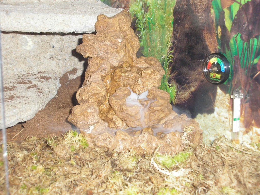 ne mlhovač tam nemám, já mám ten vodopád v tera s chameleonem, mám ho spíš na to, aby se z něj napila sama.A běží 12 hodin, máme ho na spínačkách jako světlo.