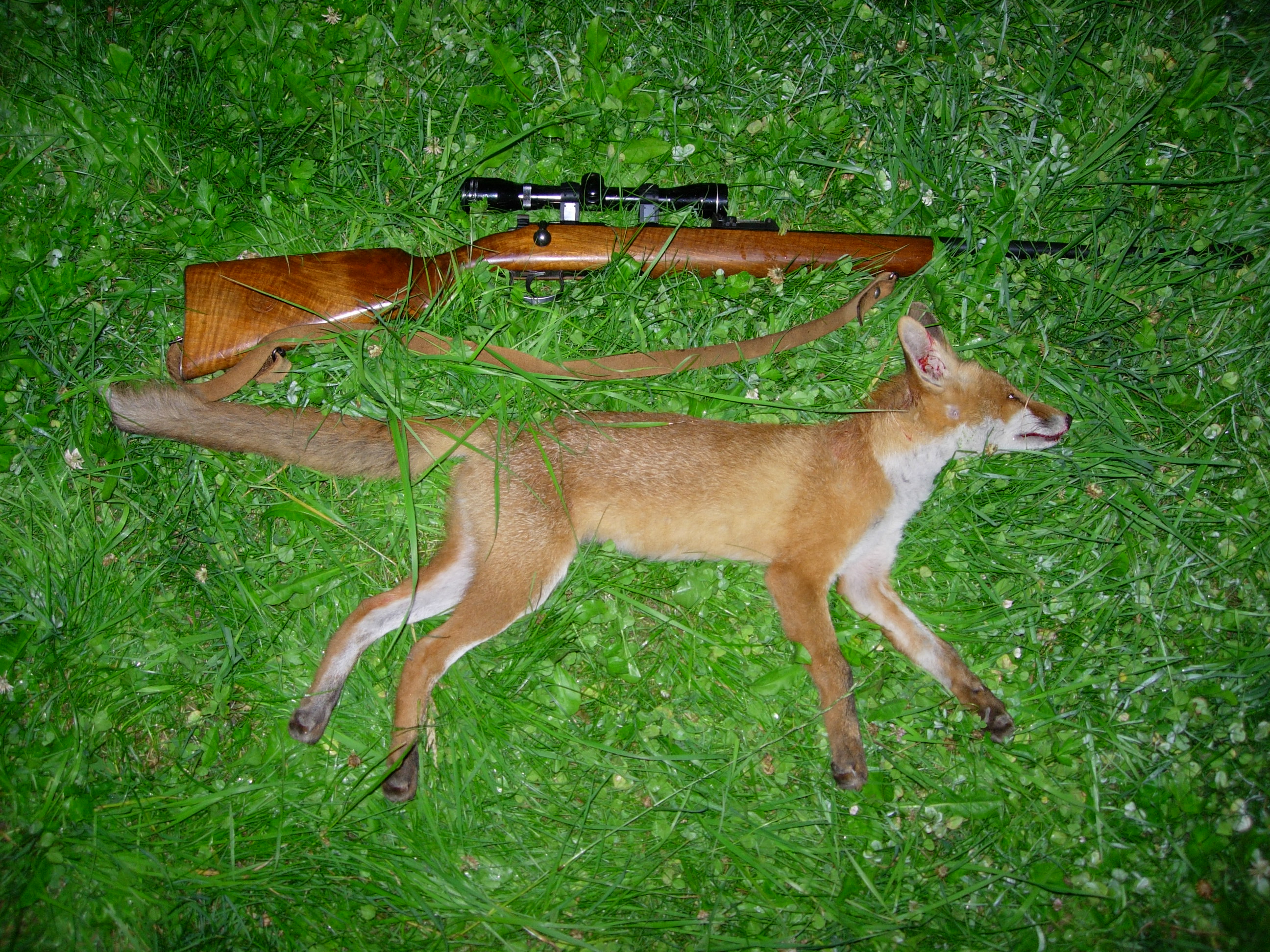 lisky? lisku neuvidis, je to nocni tvor u nas na lisku nenatrefis, nevidis ji cely rok, ale kdyz sedim v noci na posedu, vzdy nejaka prijde ..loni jsem z jednoho posedu behem zimy strelil 8 lisek, letos z toho sameho 10! ...a od lonska tu mam zajicky, krasa pohledet, take i chrastala polniho- to je vzacnost! Uz na ne neni vyvijen takovy predacni tlak, tak se zpamatovavaji. Jsem takova lisci vzteklina