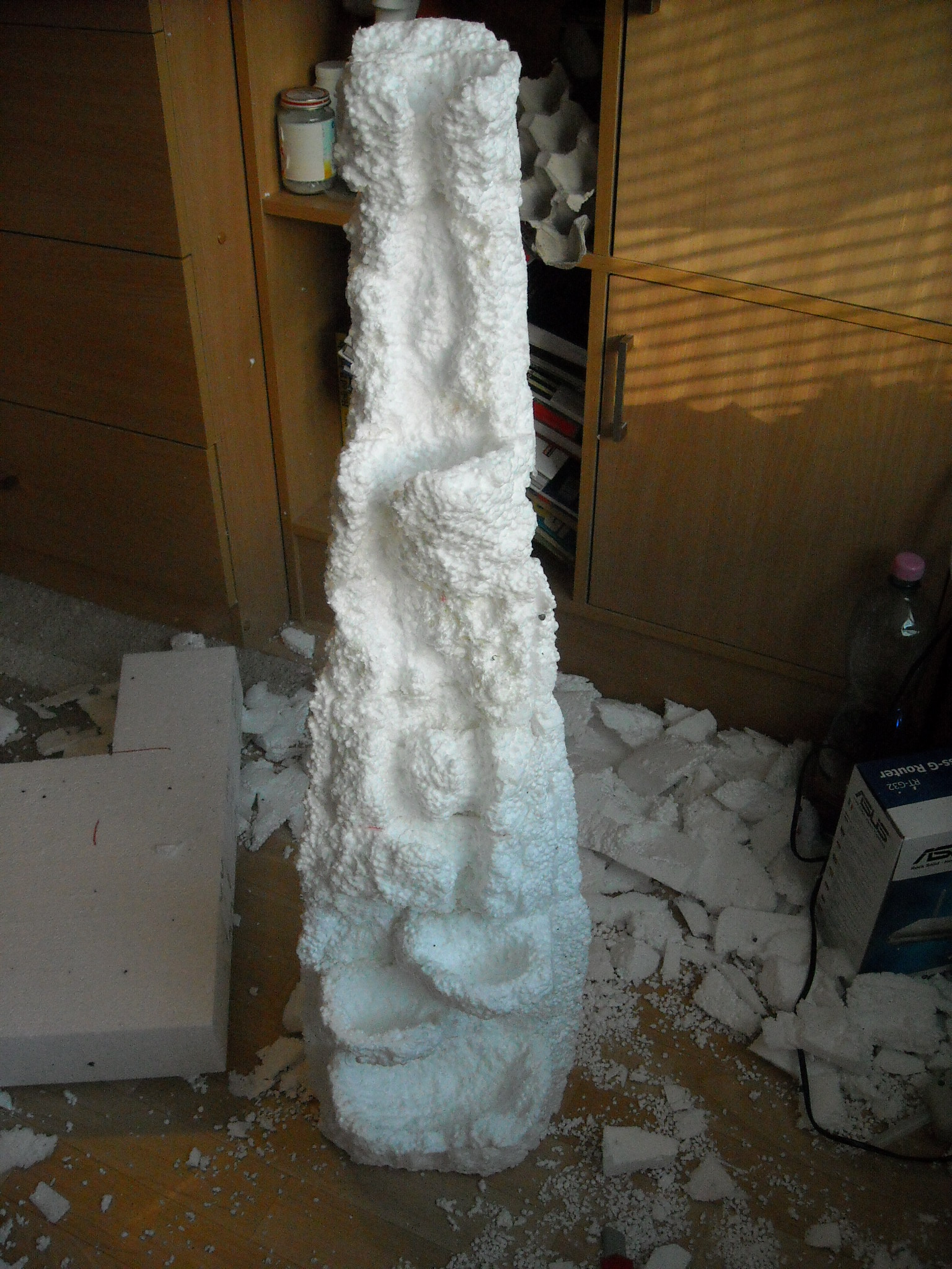 . A jestli se ještě můžu zeptat, z jak tlustého polystyrenu jsi tu stěnu dělal? Z 15ti centimetrového a pak z toho modeloval výstupky, nebo nejak jinak a chytřeji?