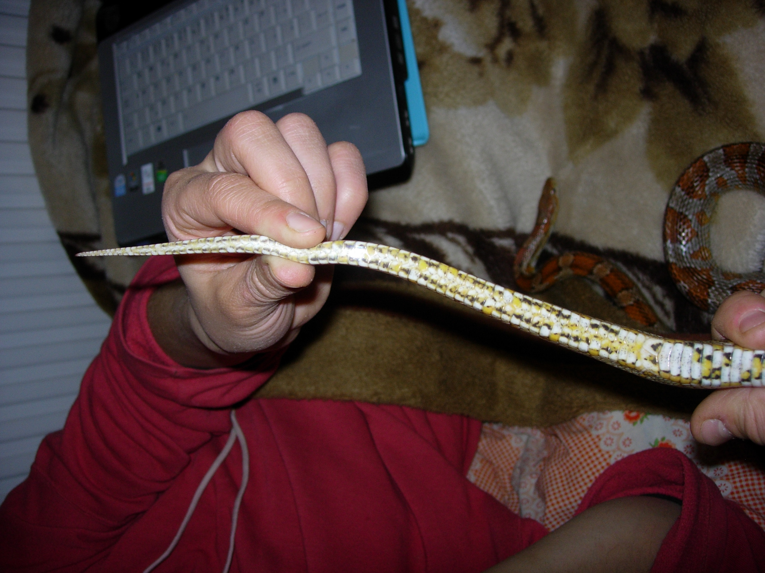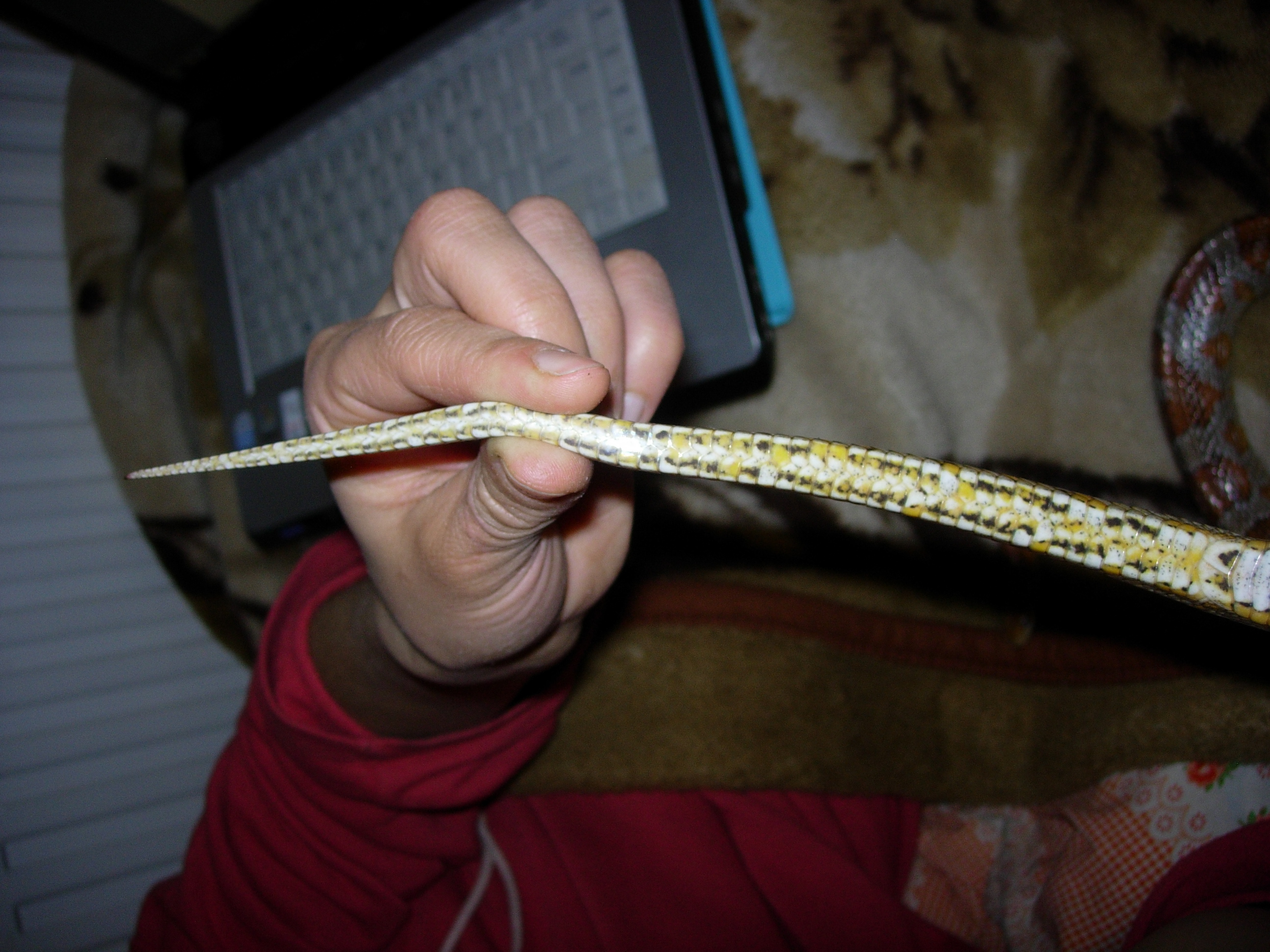Podle délky ocasu bych to viděl na kluka.... a pokud počítám dobře (a nepočítám něco jiného) tak štítků je tam 73. A na té první fotce za kloakou je ocas zůžený a pak se rozšiřuje, což opět vypadá na klučinu ... Ale nevím no. Nejsem znalec a nemám to nakoukaný.