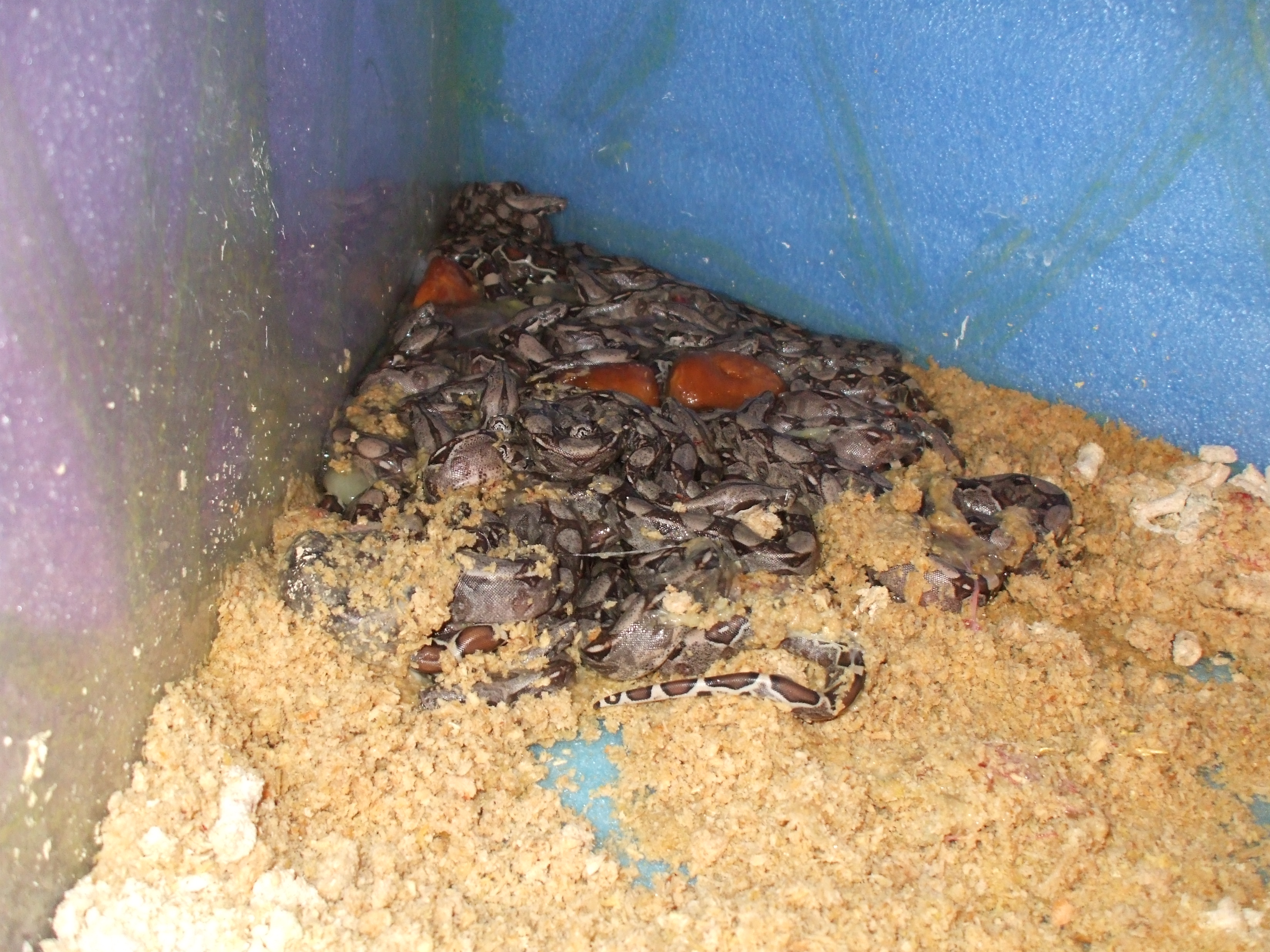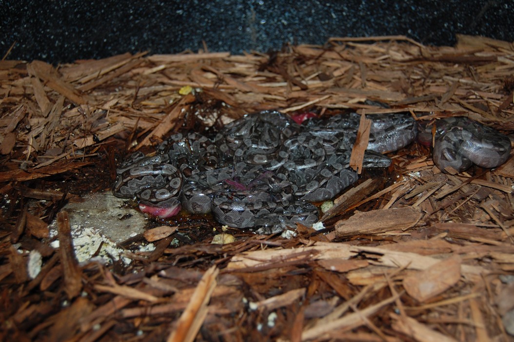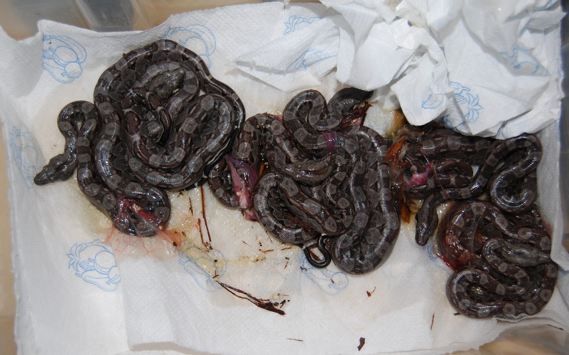 Boa constrictor - 46 mladat (+ 2 neoplozena vejce) - na jeji prvni porod to nebylo spatne :)