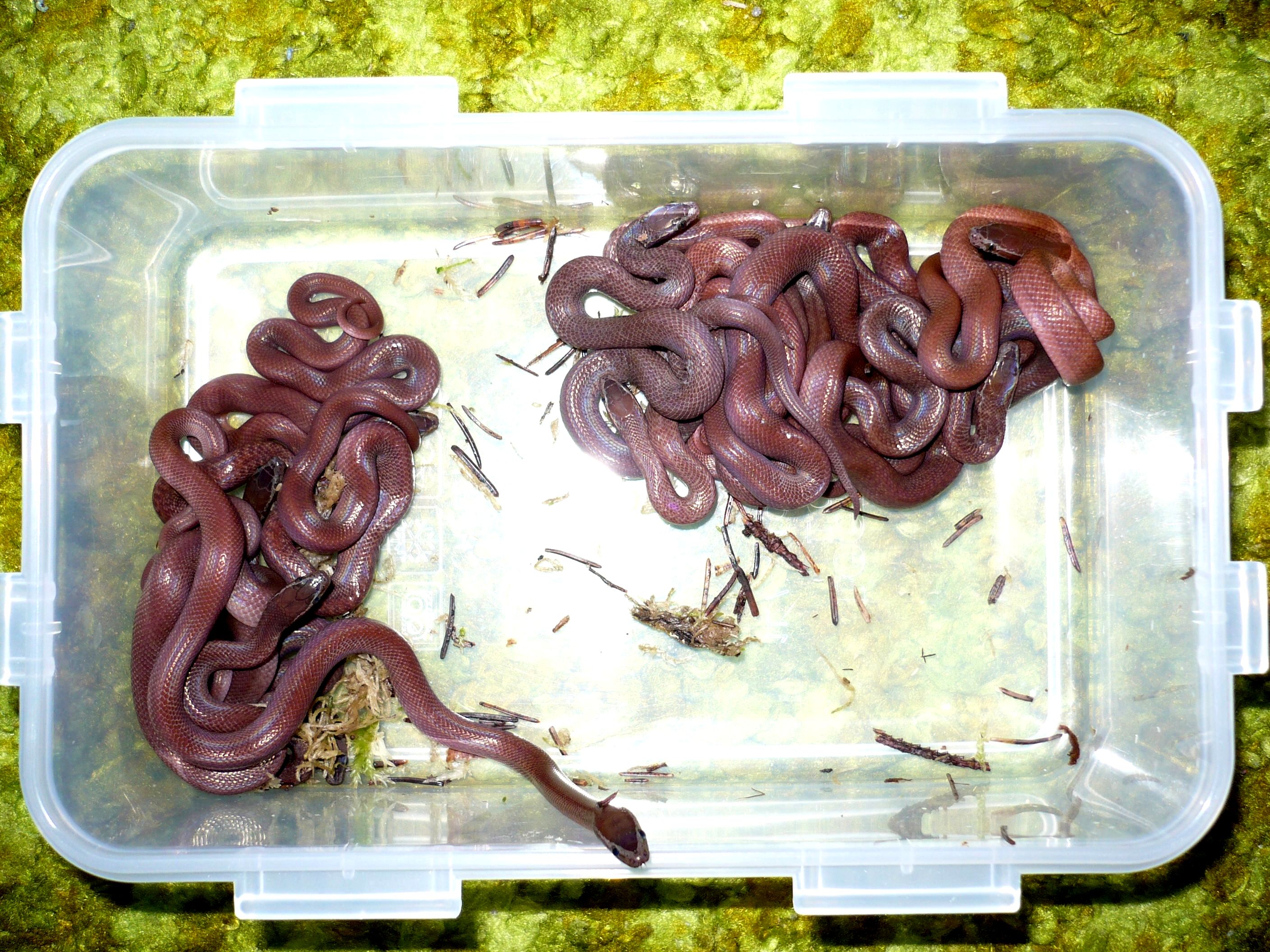 Tak se mi zas narodilo 12 prcků Lamprophis fuliginosus, dárečci po stromeček.:-) poslední