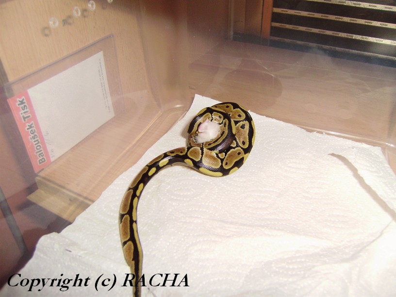 Gratuluju. Krmení neni zrovna skvělá zábava. Já to řešim tak že je dávám po jednom do plastových boxů. Problém je ten že při prvních krmeních jim to nejde zrovna rychle, vždycky jsem uplně naprášky. Jejich postup je totiž následující 10min škrcení, 10min hledaj hlavu a 10min polikaj. No a když jich člověk krmí 150 je to zážitek, ale na druhou stranu příjemnej! Já vždycky po cca týdnu nakrmim poslední a začínám první a tak to jde do kola. No a když má někdo slabé nervy a začne ty nežerocí krmit uměle tak má deně po práci druhou směnu u terárií. Chce to totiž pevné nervy některá mláďata jsou vystresovaná z té bedny a nechtějí žrát, ale hlad je vždy donutí ovšem chce to vydržet. Takže přeji pevné nervy. Já čekám do měsíce mixy a Chiapasy obojí od 2 samic. No a do 2 měsíců dalších 6 samic různých poddruhů tak už sem netrpělivej aby bylo vše v pořádku.