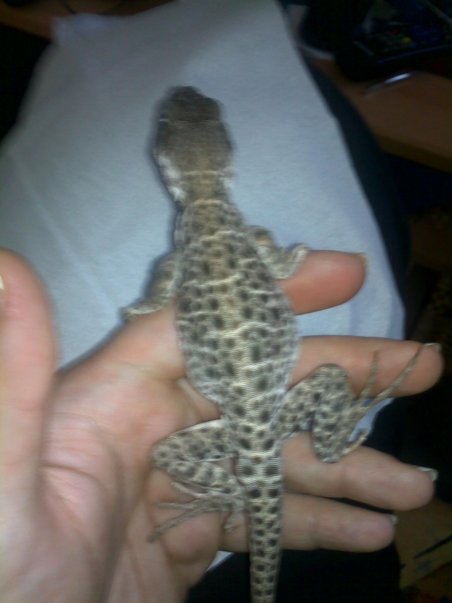 Mám zkušenost jen s leguánem a ten byl zdravý. Tohle mi přinesla kamarádka, že si to koupila na burze a že si myslela, že to bude klidnější (ne tak živé, pohyblivé). Neví, co koupila (na krabičce je Gambelia), zda šlo o samce nebo samici, jak je starý (já to tipuji na samce)atd. Koukala jsem na net, ale nevím co přesně by to mohlo být. Možná leguánek leopardí, ale přijde mi to nepravděpodobné, kuli tomu že jich je celkem málo.