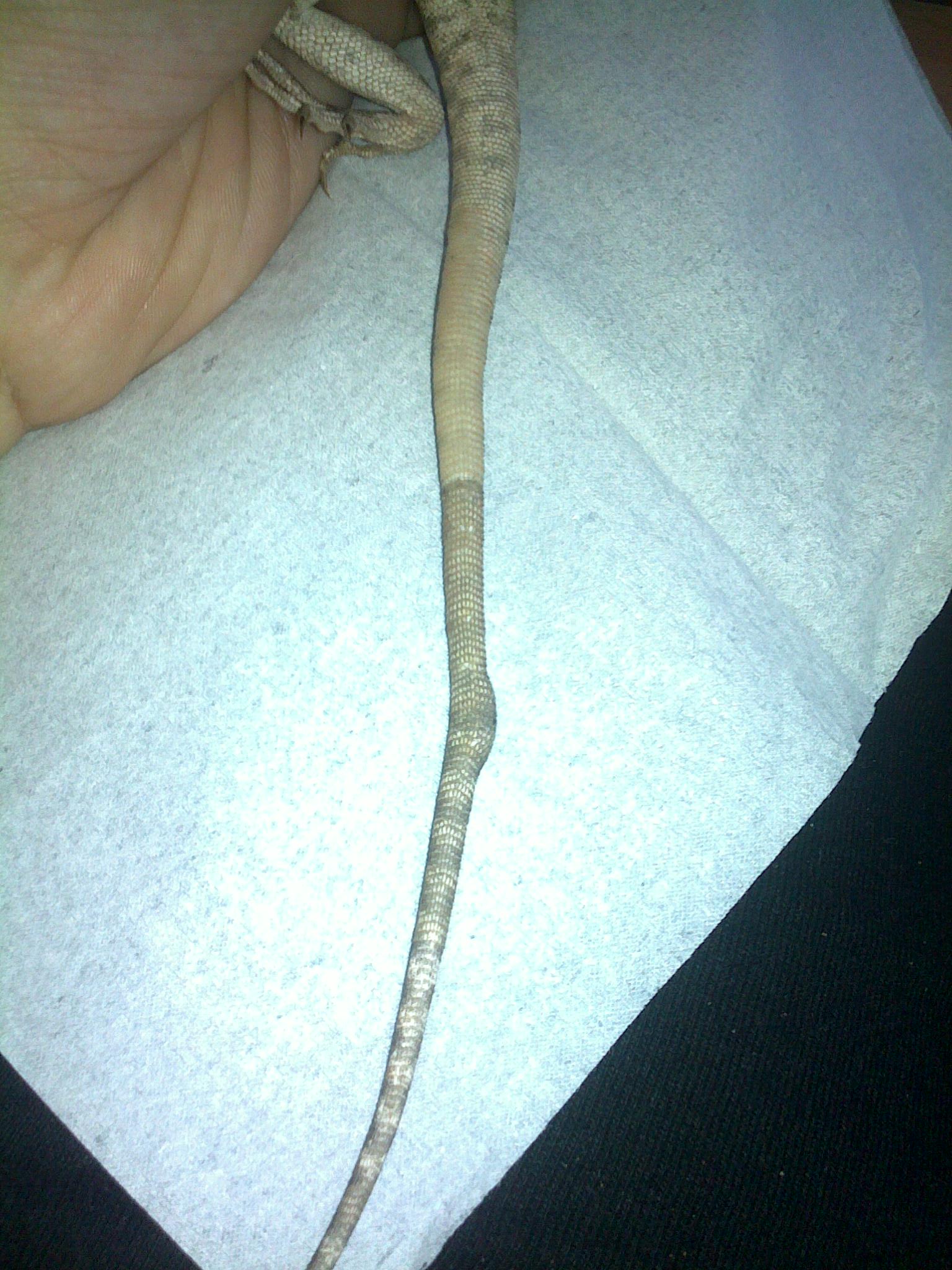 Gambelia wislizenii bych řekl. A to na ocase bude zlomenina nebo rachitida. Mohla se s tím taky už vylíhnout. Nemyslím si, že se jí to ještě napraví, ale ani že jí to nějak omezuje, ale podle jedné fotky těžko říct jistě co to je.