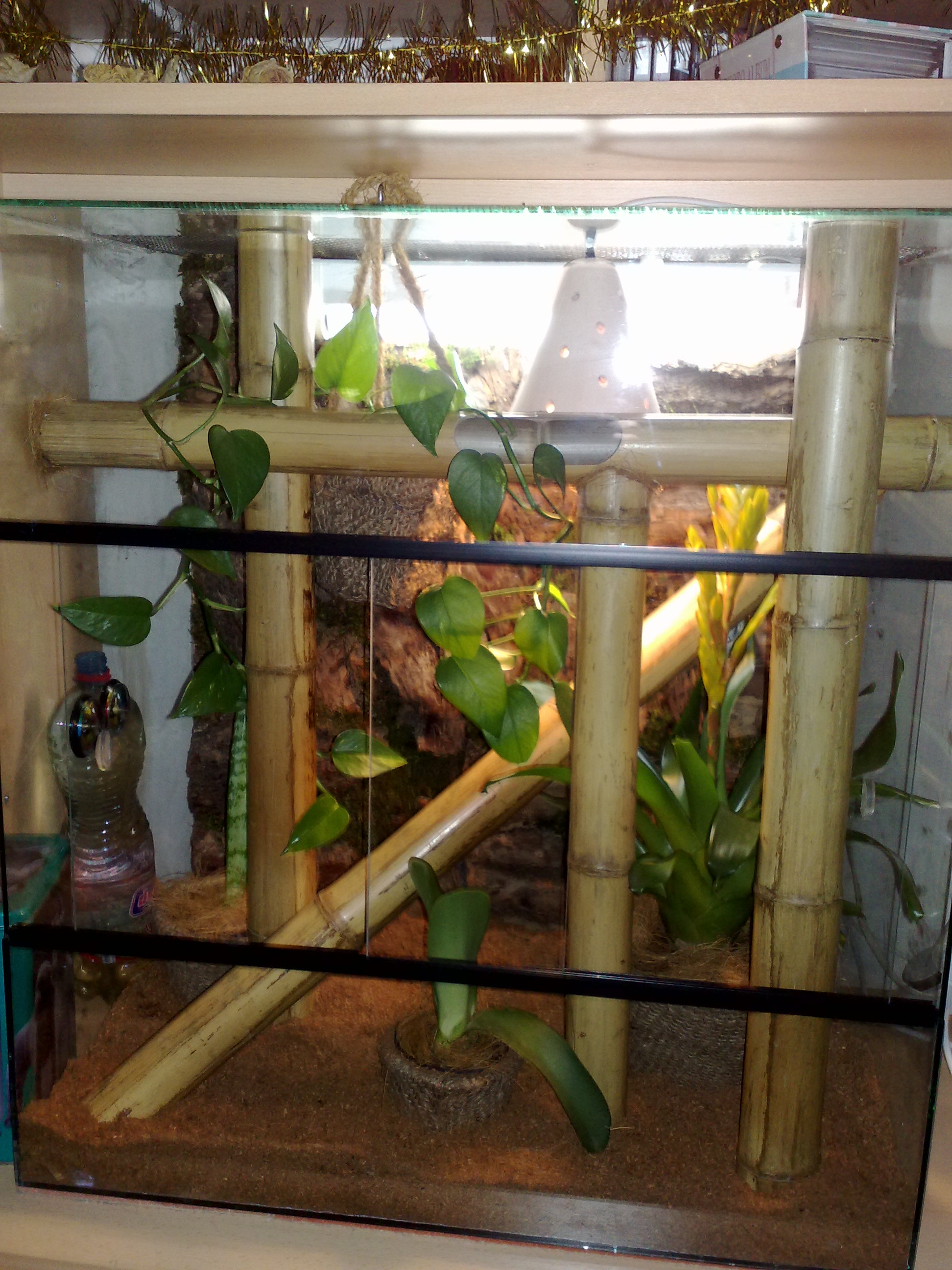 Máš ho pekne ale predsa niečo ta polička mohla byt kludne aš do polovice terarka a svetlo by bolo lepšie nad nou.Myslim že to by nebol problem to zmenit ak suhlasiš somnou.Ked bude mat B.c tak 2,5m pochybujem že sa ti vmesti na tu policu.