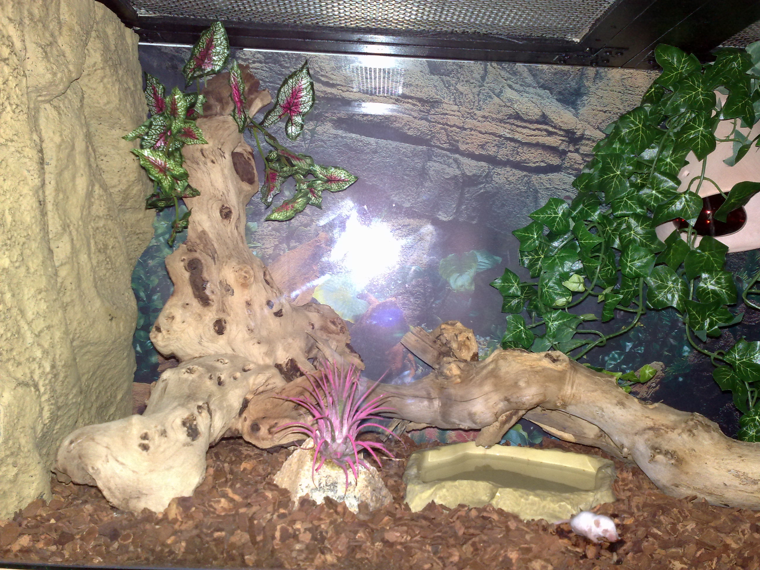 Tak přispěju taky trochu vody do mlýnku.Terárium pro variegaty a tady za tmy,bez blesku