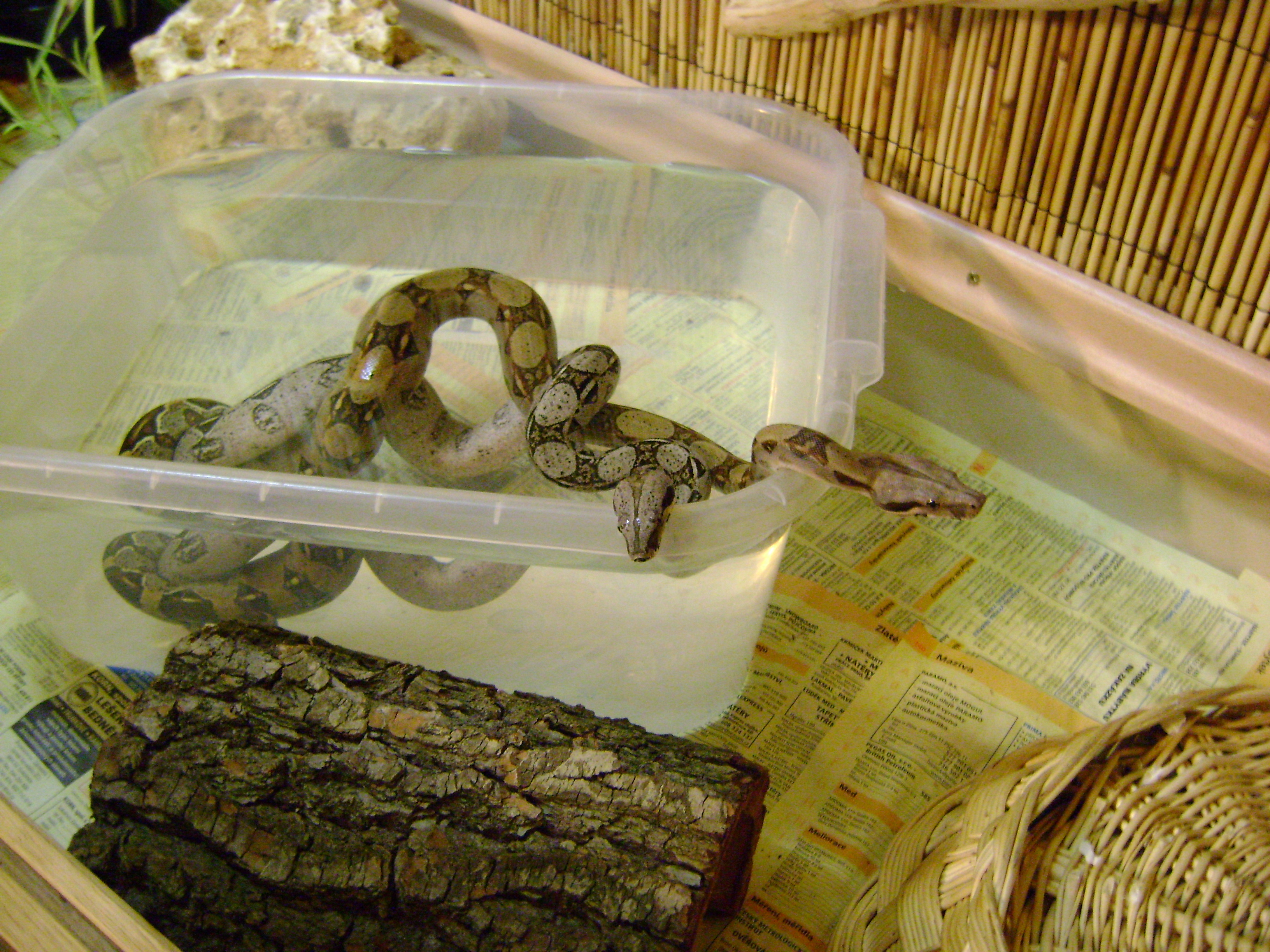 Tak tera jsou velká cca 125x61x65 cm ...Původně to mělo být jedno velké tera,ale po pár konzultacích s chovateli Boa sem nakonec naznal že pro samce zařídím tera těchto rozměrů (pro 1ks),popřípadě bych pak udělal větší ...Ted´ tam budu dávat odrostlejší samice,jedna má cca 110cm a druhá cca 130cm ...Až časem tam příjdou samci ,,,Co se týká rodičů,tak si zatím nemůžu stěžovat mno