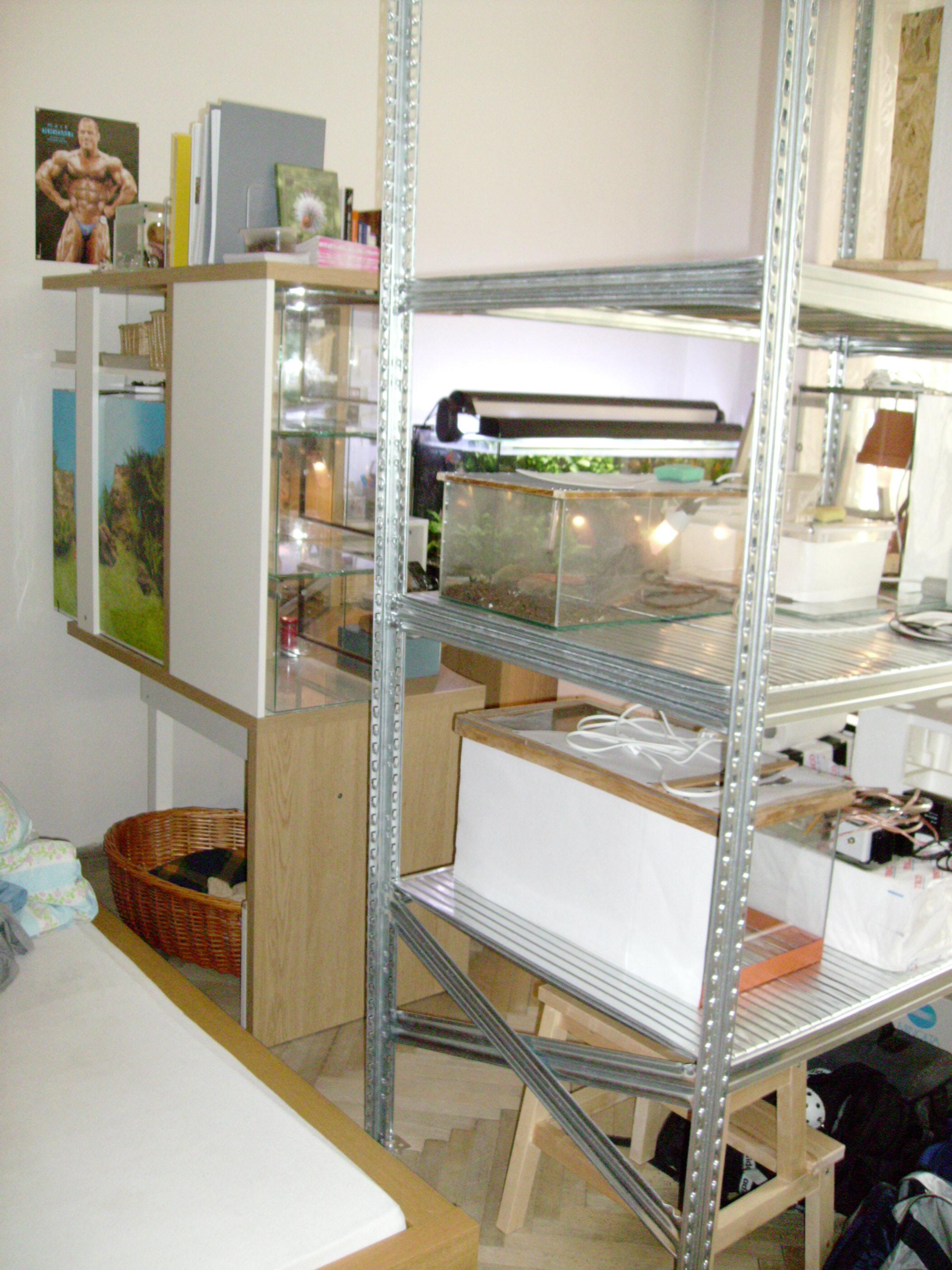 Tak sem konečně hodím fota těch slibovaných nových terárek ...Ještě musím dodělat elekrto instalaci a podobné věci,ale základ je již hotov ...Jinak ještě přidávám foto mého "nového" pokoje po rekonstrukciPodotýkám že uličky jsou tak akorát na šíři ramen ,,,