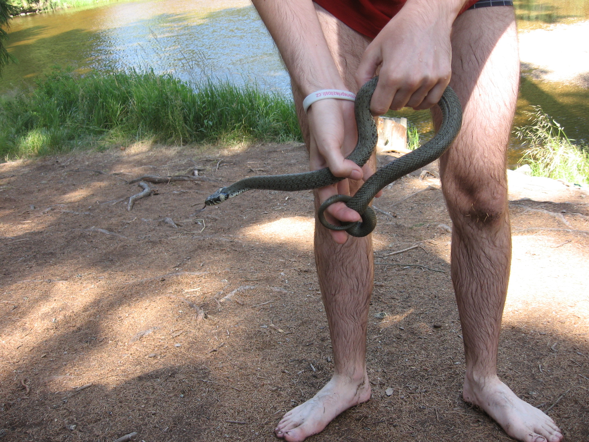 Taky slusnej kousek, ale na predchozi exepmlar nema. Dospely jedinec Natrix Natrix, chycen na Sumave 11. 7. 2008. Uzovka plavala primo ve Vltave, asi 5-10km od zacatku Lipenske prehrady, kam se reka vleva.