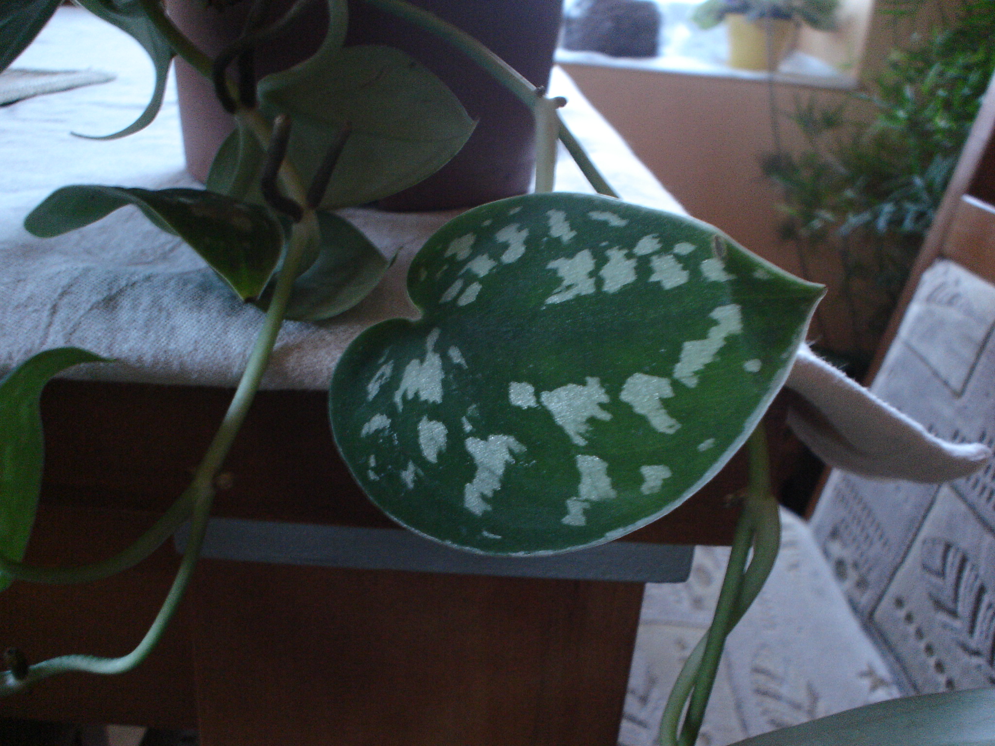 Mal by to byt Scindapsus,u nas Divy Jano,je ich viac druhov,inač jedina rastlina,ktora my odolava najazdy leguanov,dobre sa nim po nej šplha,je odolna voči teplu,vlhku,ma dost tvrde listy,jeden ich obhryza,druhemu nechuti.