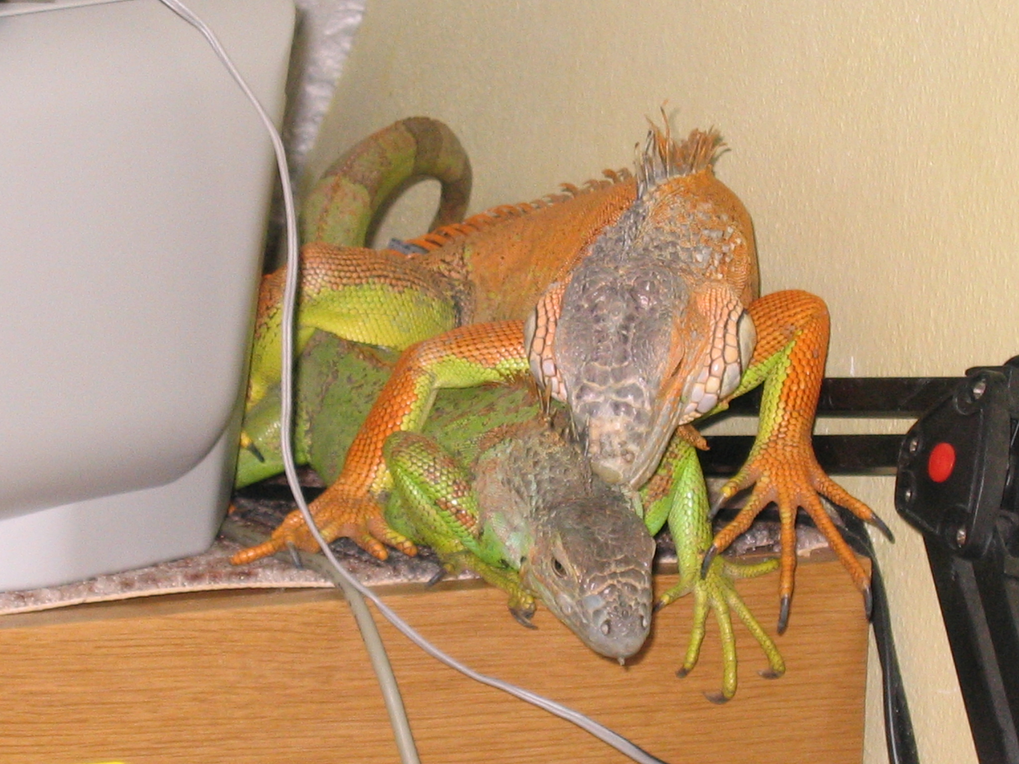 Leguan určite potrebuje viac ako jednu žiarovku, a dokonca aj maly dokaže riadne poškriabat a uhryznut!Ak prežije,tak za 2-3 roky sama zbadate,čo dokaže lego v puberte.Leguanek sa môže zmenit na poriadnu zelenu nevyspytatelnu a zakernu beštiu.Dnes som napr. dostal za odmenu ranu chvostom po čuni-to bolo podakovanie ako som ho pekne nakrmil z misky,ktoru som mu držal pri tlame.No su to mile tvory.