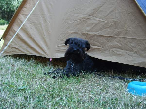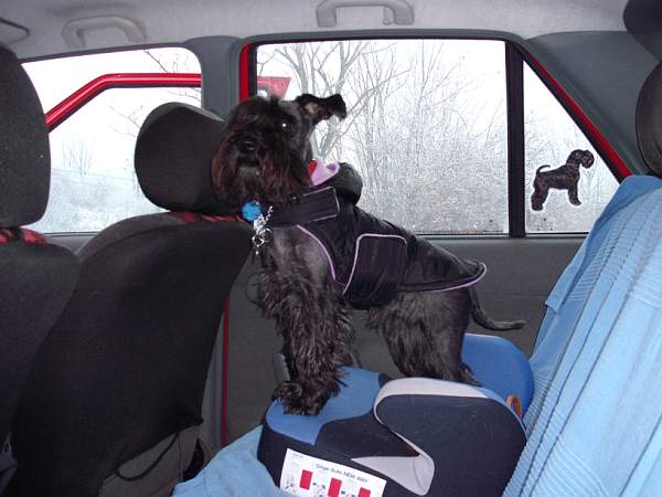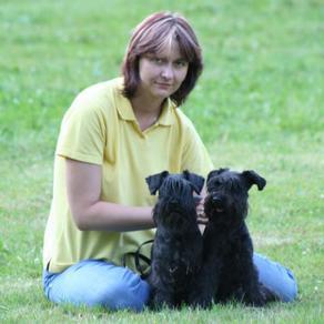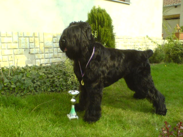 Tady je naše fenka Černýho (ruskýho) teriéra. Na fotce asi 3 roky, teď už se blíží k 7 ale aktuálnější fotku nemám.