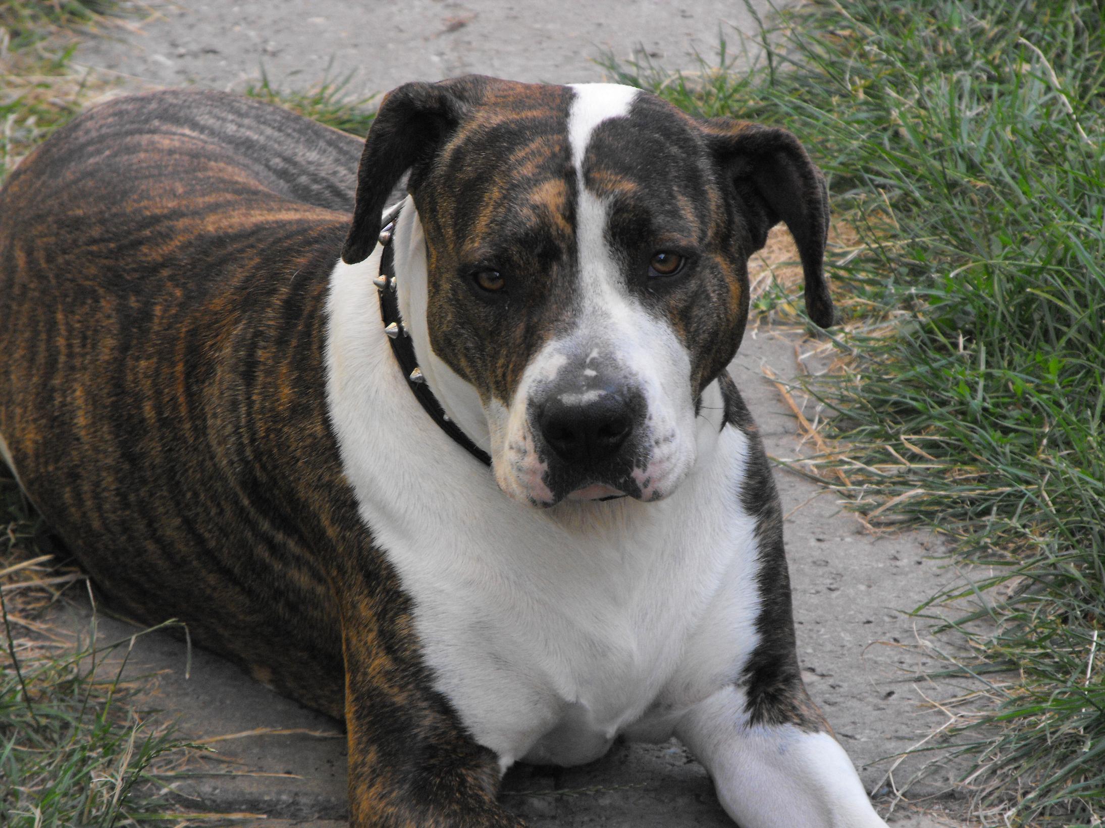 Pokud ten velký hnědý pes je v mém příspěvku, pak je to Americký stafordšírský teriér...