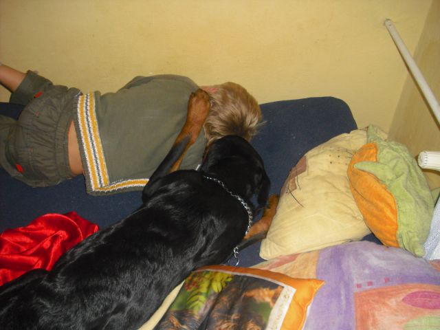 Muj Rhodesian Ridgeback skoro 3 roky holcicka...ale nevim jestli se ji da rikat pes...sedi s nami u stolu na zidly i o vanoce sedela...:) talkze uz spis takove moje sestricka...