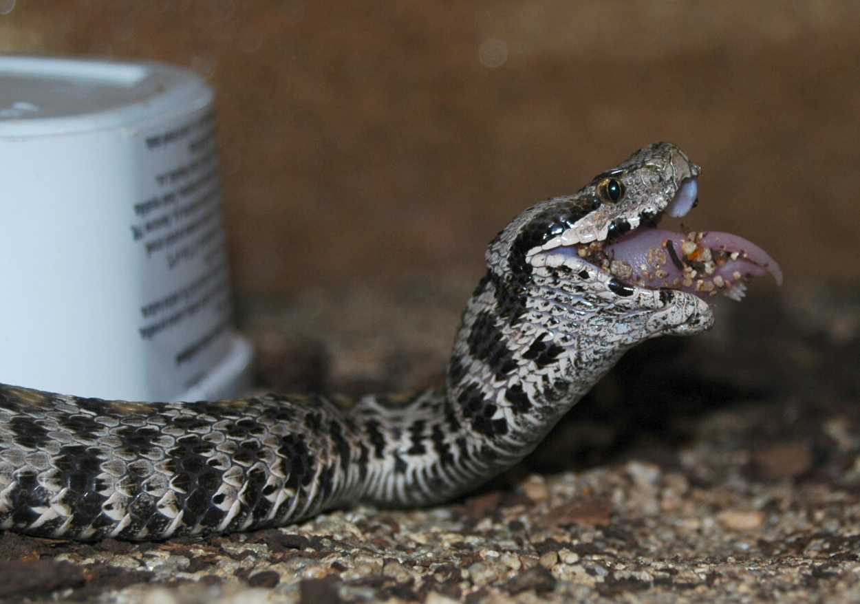 Tak ja zacnu pred chovem jedovatych hadu jsem choval zhruba 10 let mezi ne patrily E.guttata,L.fuliginosus,G.oxycephala,E.t.friesei,B .constrictor,P.reticulatus,P.m.bivittatus, Prvni mi jedovati hadi bylo adultni trio Vipera renardi pote jsem si poridil par nominatniho poddruhu Vipera ammodytes a par Cryptelytrops albolabris a pak uz z prudka Bitis gabonica rhinoceros a Crotalus atrox