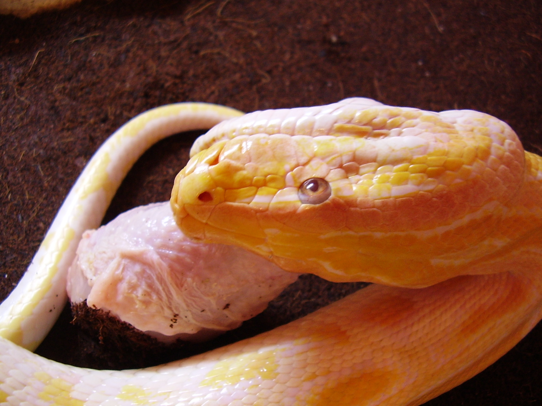 Krmení tímhle eklem je kekel. Pokud tím někdo krmí tak tomu moc nerozumím, had potřebuje vše srst,maso,kosti, prostě vše aby byl cajk. Nedokážu si představit že tím někdo krmí a mluví o zpestření, já osobně krmím převážně králíky,morčaty, a když chci tedy nějaké to zpestření tak dávám kuřata holubi sem tam kočku když se naskytne. Každopádně když dám krmení z ptačí říše tak má konda do pár dní vystaráno a můžu krmit zase.Rozhodně vše v celku jak má být . . to by jsme za chvilku mohli skončit u šunkového popcornu.