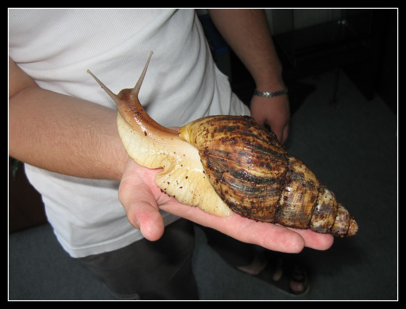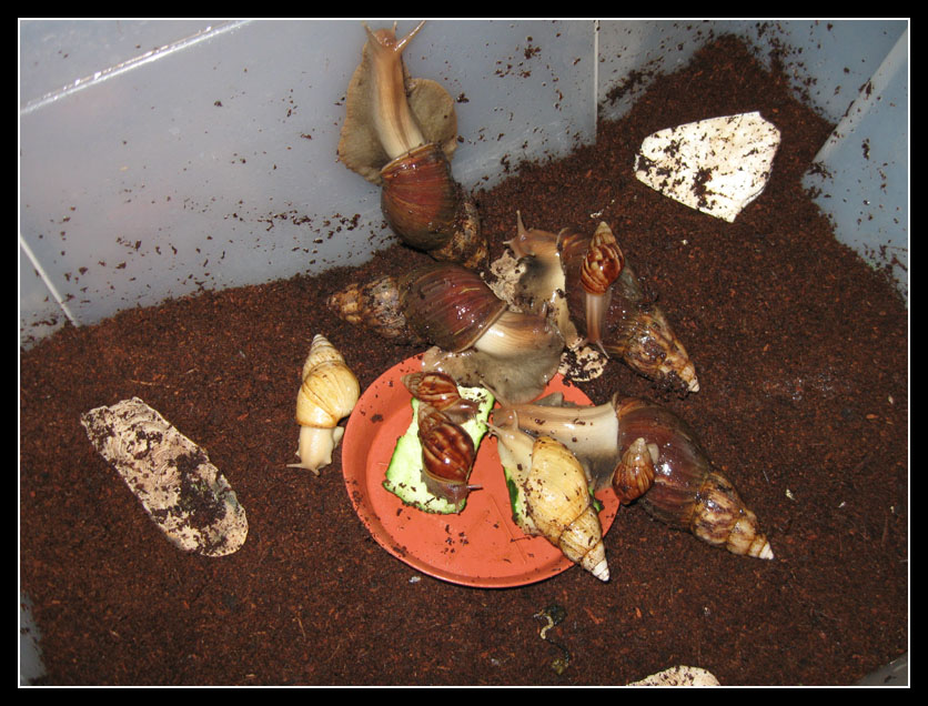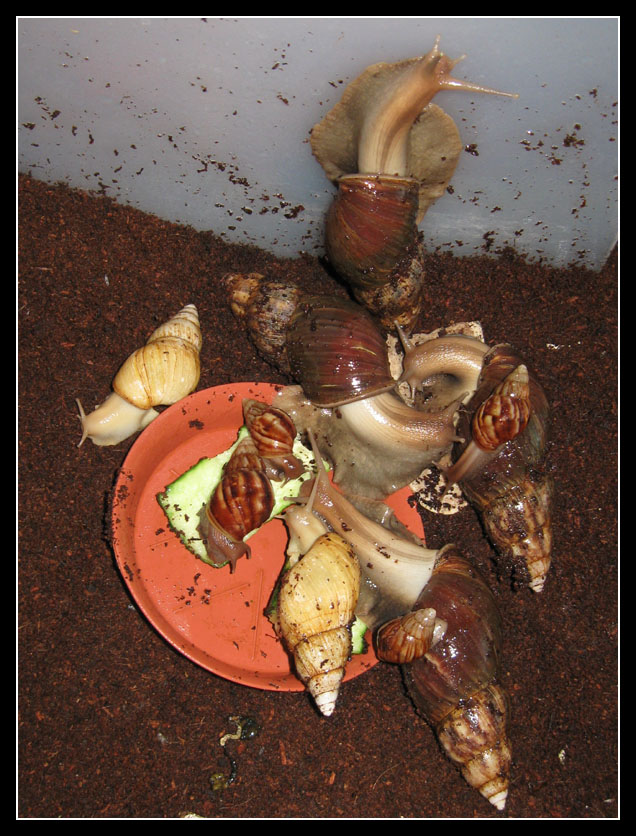 Taky se pochlubím,na ruce Achatina Reticulata,16 cm ulita.V plast.bedně Achatina fulica,Achatina Iredalei.Od A.iredalei mám asi 100 mládat tak pokud by někdo htěl tak stačí napsat.Milda:)